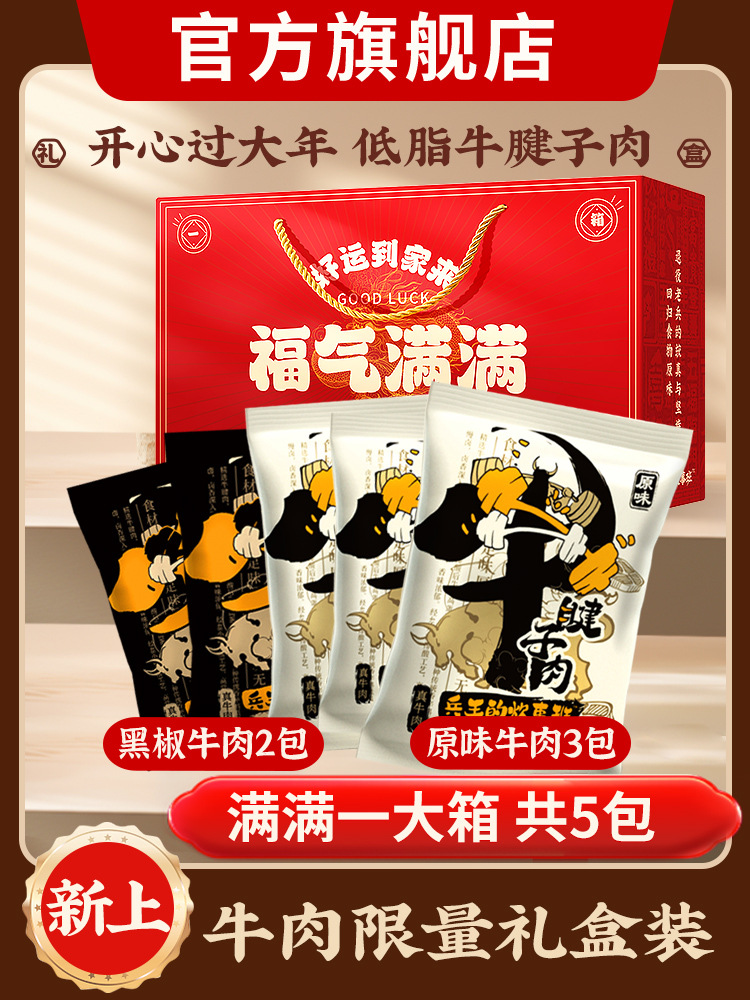 • [신년선물박스] [대형 5팩] 오리지널 쇠고기 3팩 + 흑후추 쇠고기 2팩