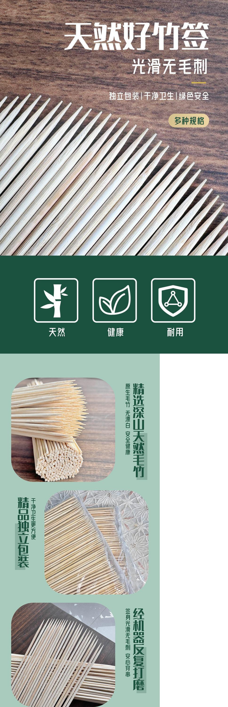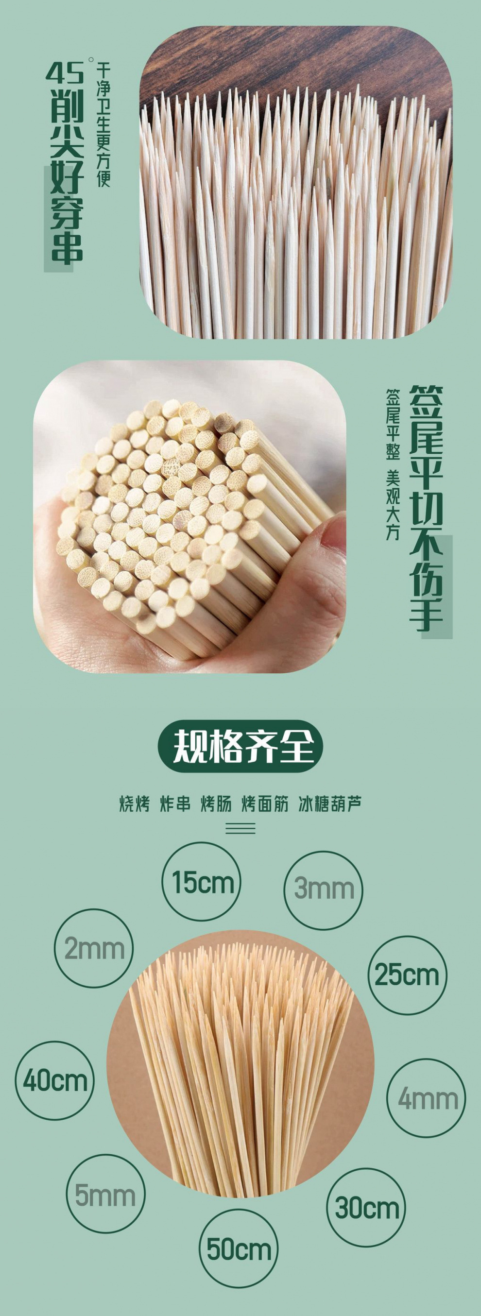 • 길이 25cm x 두께 3 mm [작은 고기 꼬치 약 2000개]