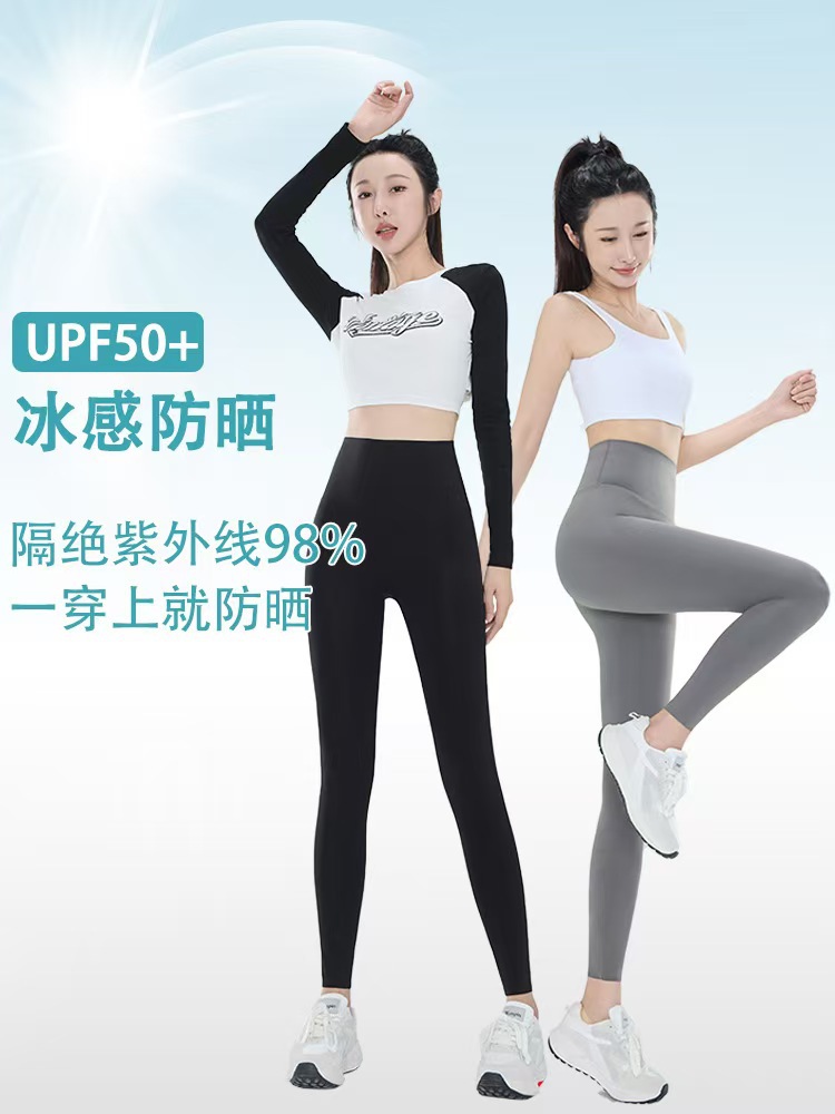 상어 바지 여름 여성 아우터웨어 2025 새로운 아이스 실크 선 스크린 아이스 센스 높은 허리 배 투킹 요가 바지 에어컨 바비 바지스토어 가기