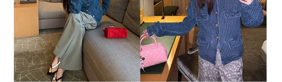 작은 샤넬 스타일 데님 짧은 재킷 2025 봄 새로운 가짜 포켓 디자인 수직 칼라 스트레이트 긴 소매 탑스토어 가기