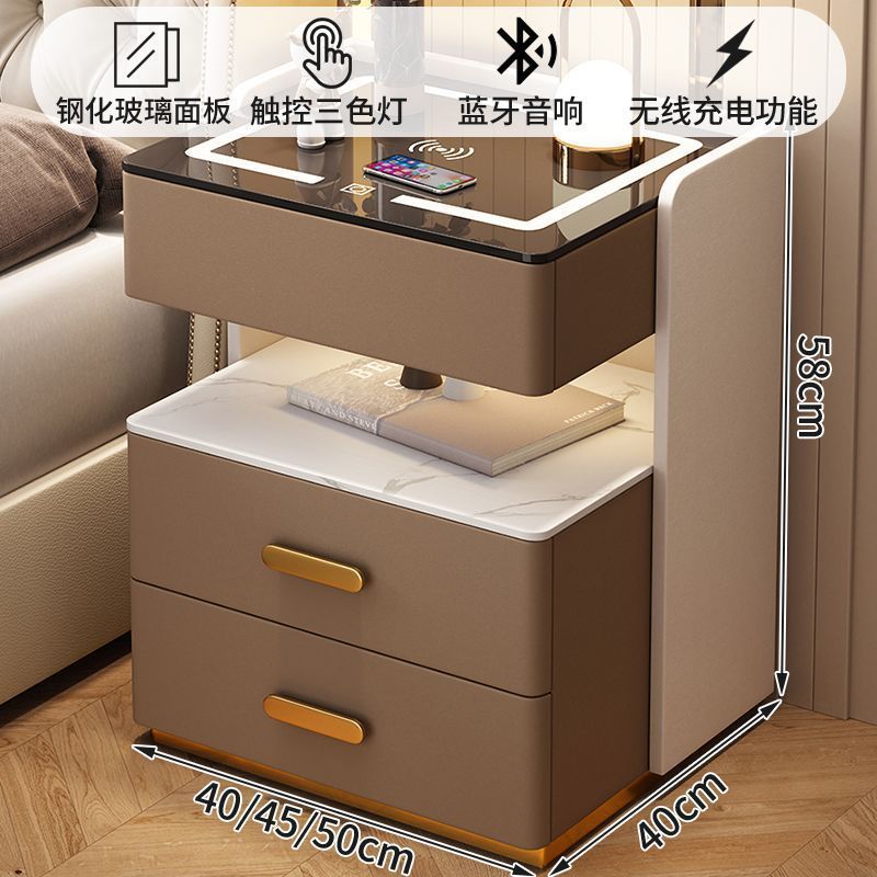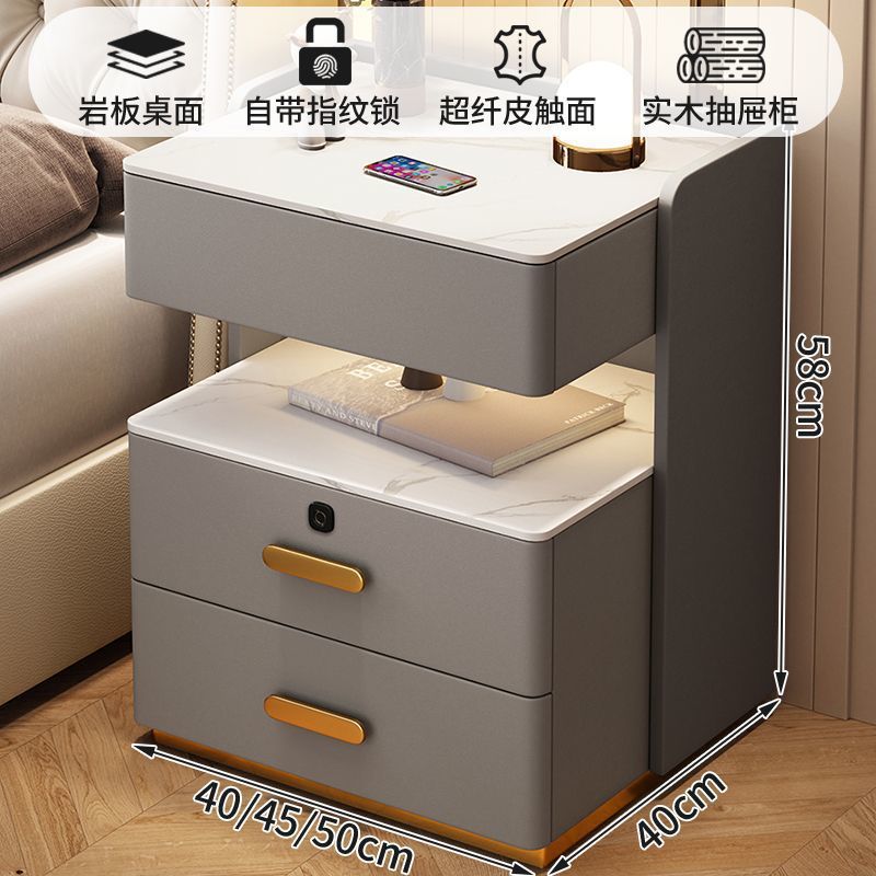 스마트 현대 침대 옆 테이블 간단한 침실 빛 고급 고급 새로운 충전식 락 보드 다기능 스토리지 솔리드 우드