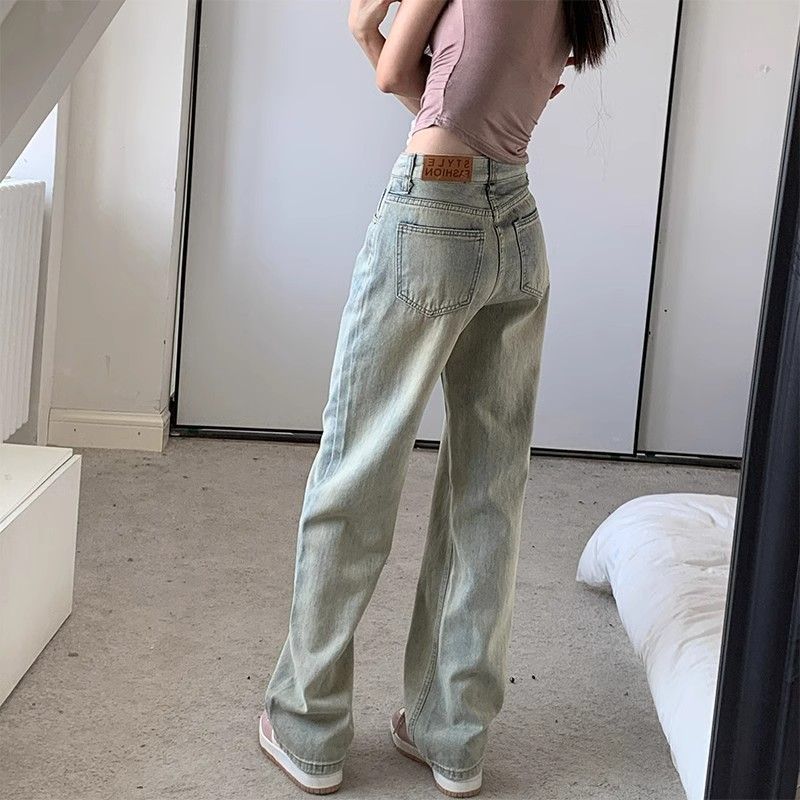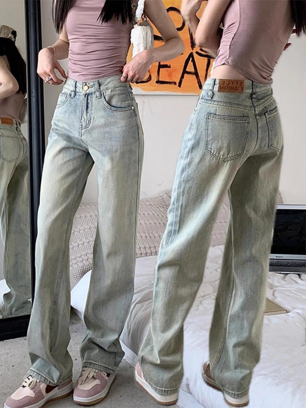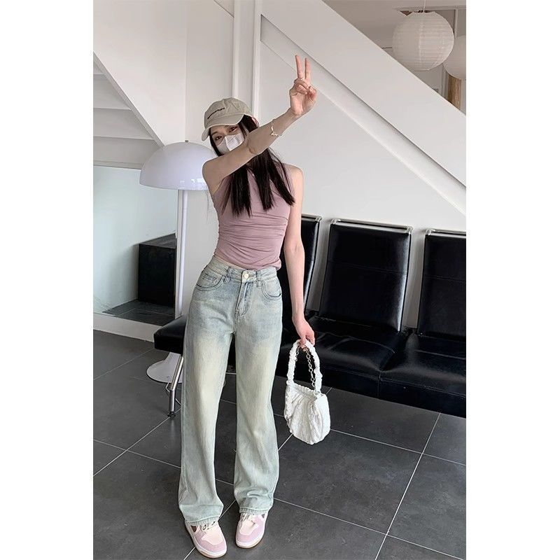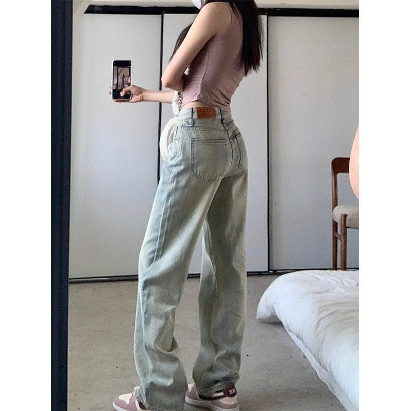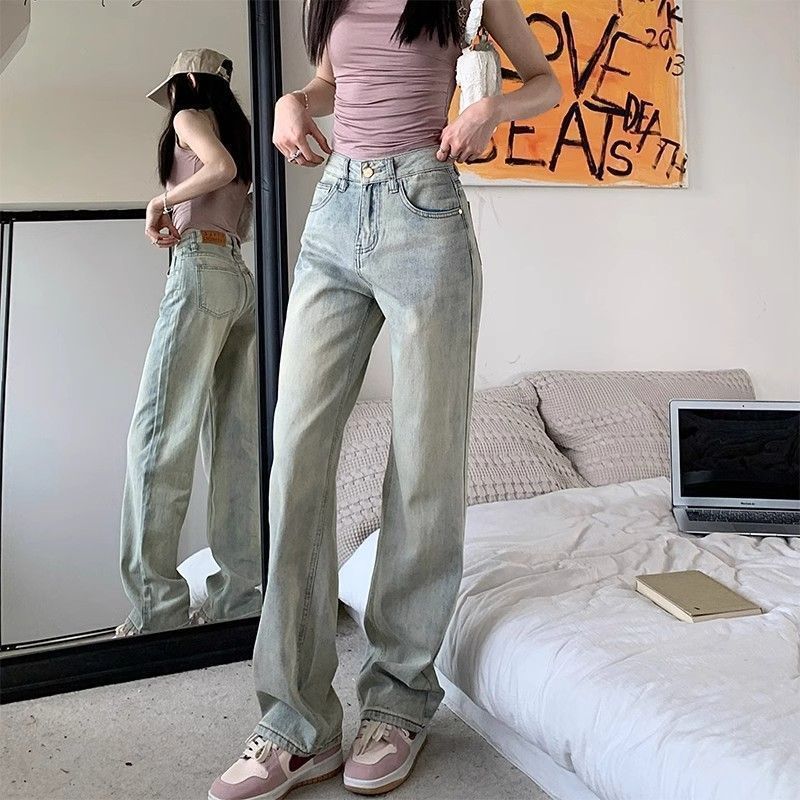 빈티지 아메리칸 스타일 넓은 다리 청바지 여성의 봄과 여름 높은 허리 슬리밍 라이트 컬러 느슨한 투약 좁은 스트레이트 바지스토어 가기