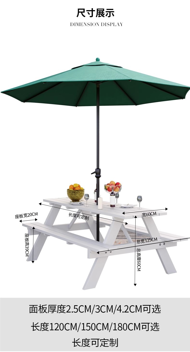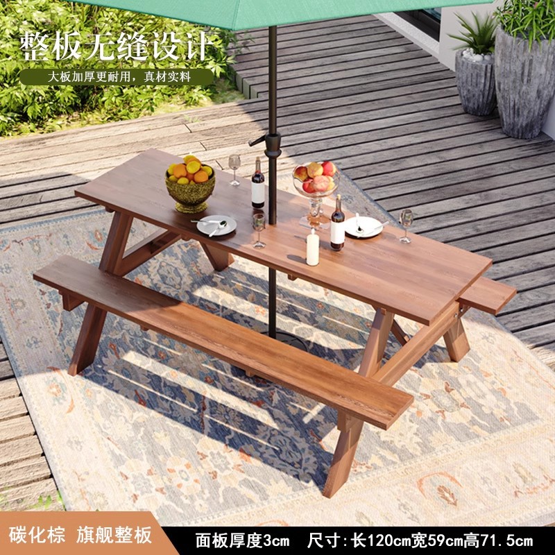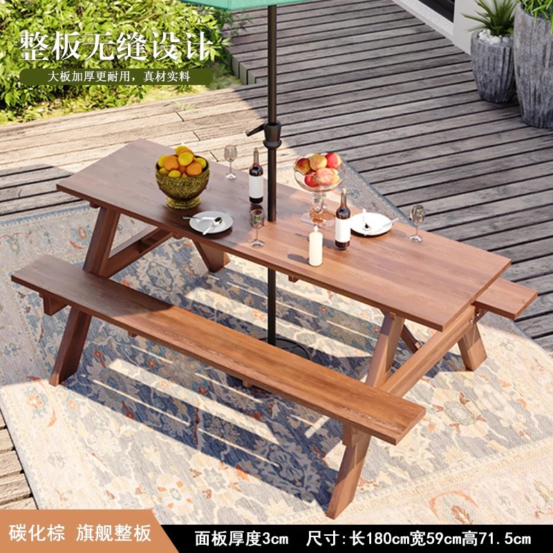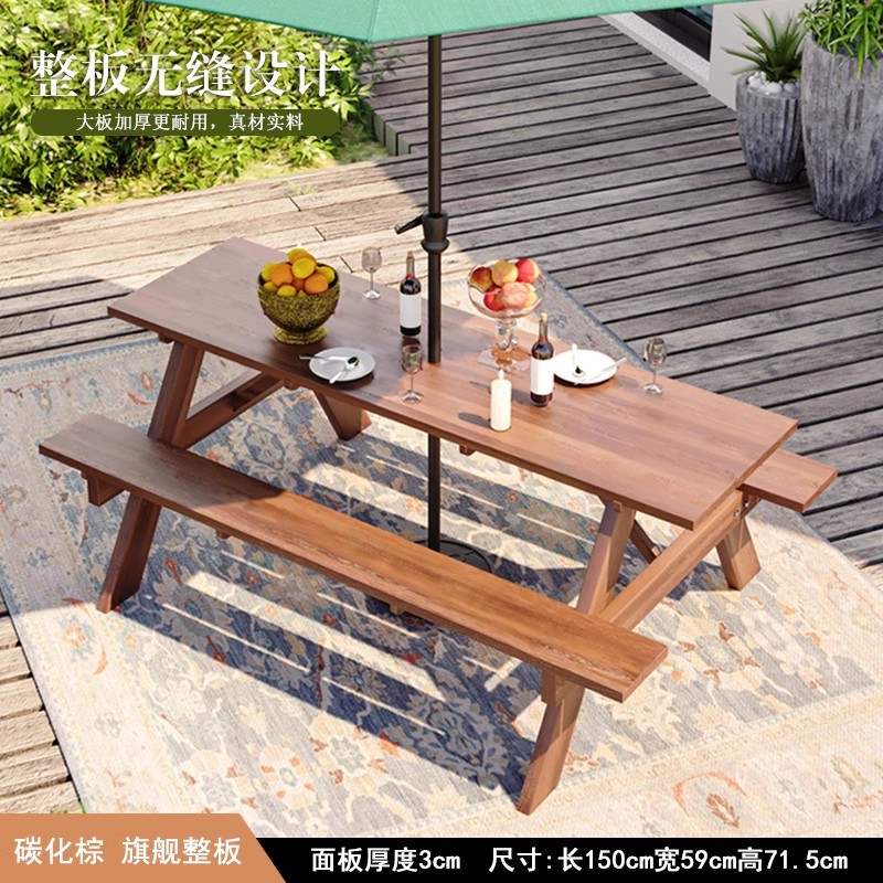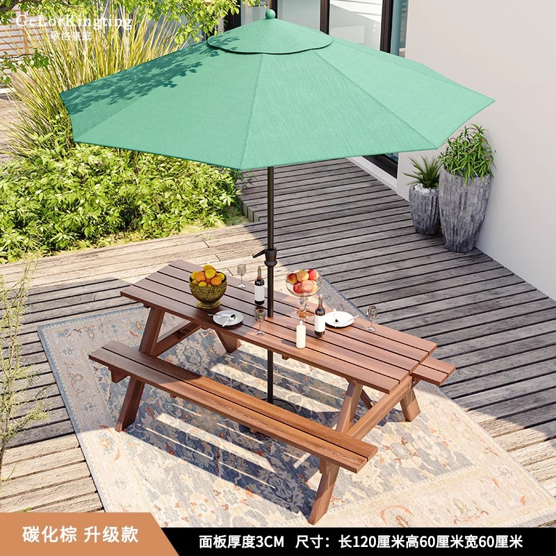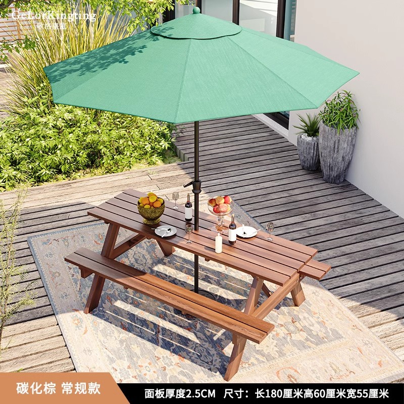 야외 테라스 탈색 나무 테이블과 의자 우산 야외 안뜰 단단한 나무 레저 테이블 야외 방비 방수 선 스크린 긴 테이블스토어 가기