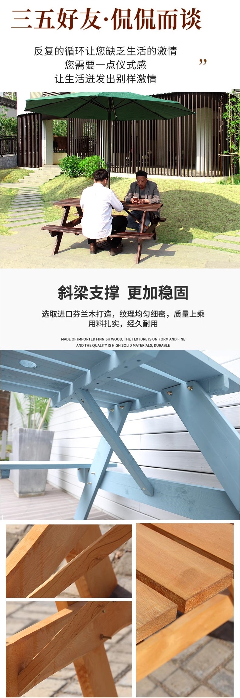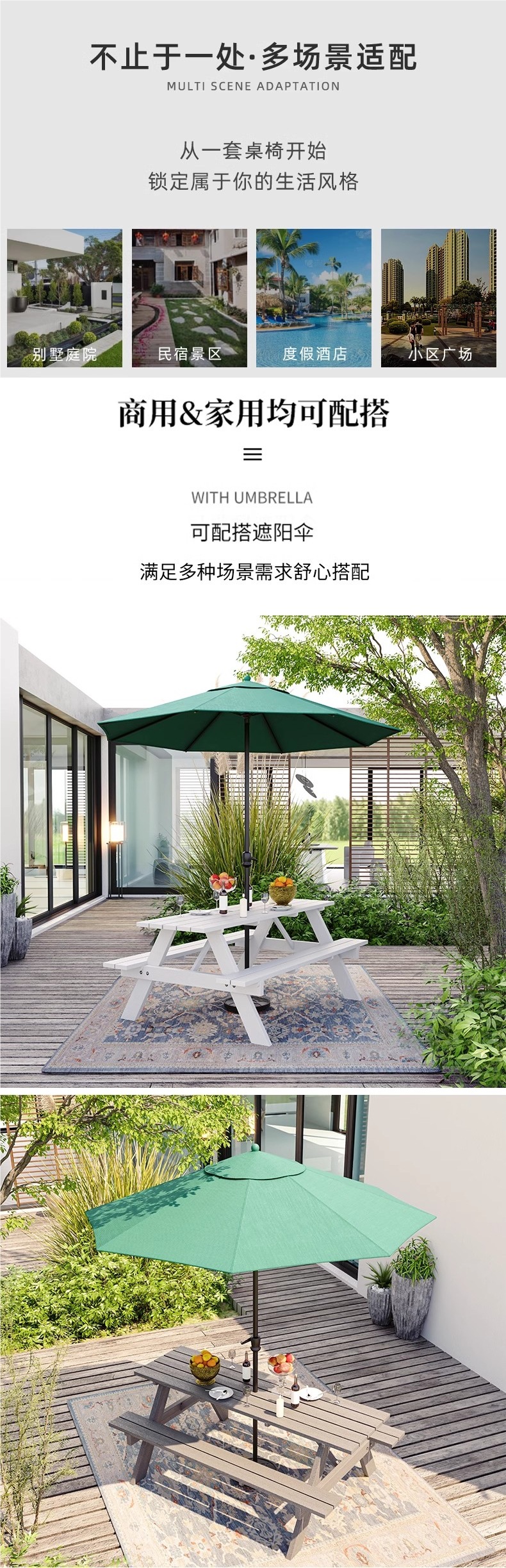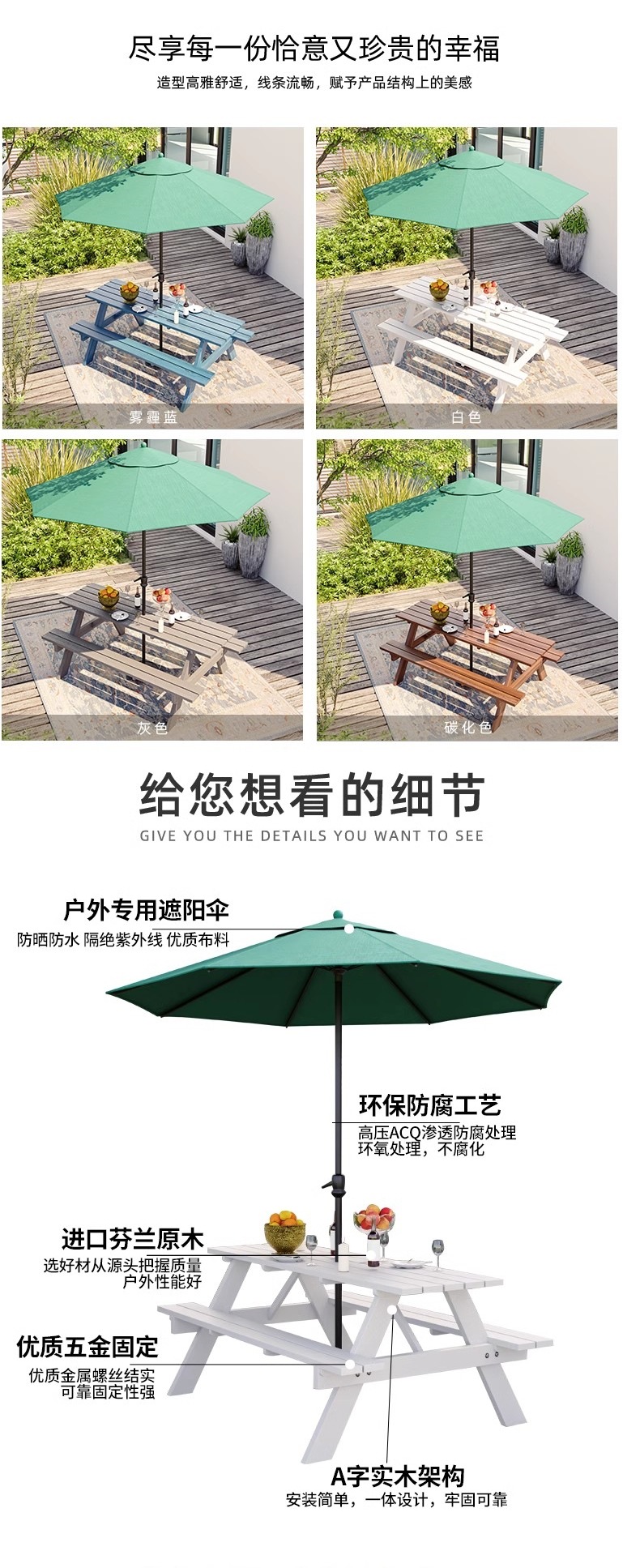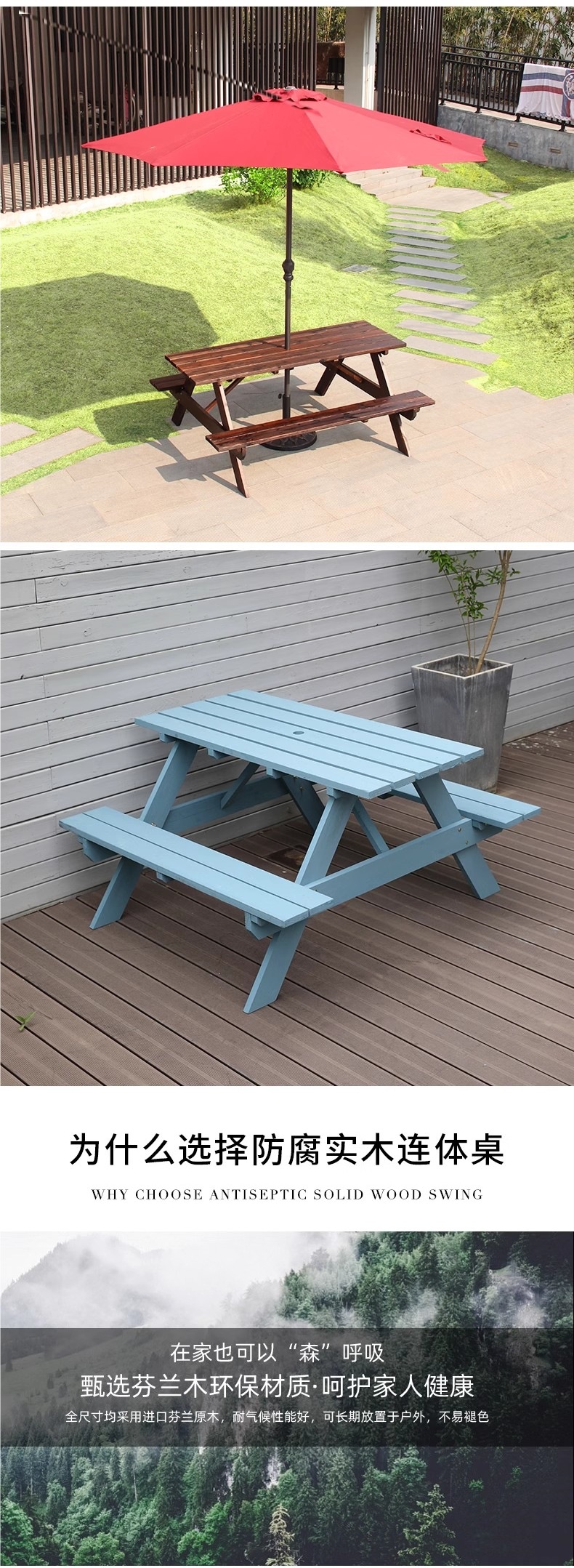 야외 테라스 탈색 나무 테이블과 의자 우산 야외 안뜰 단단한 나무 레저 테이블 야외 방비 방수 선 스크린 긴 테이블스토어 가기