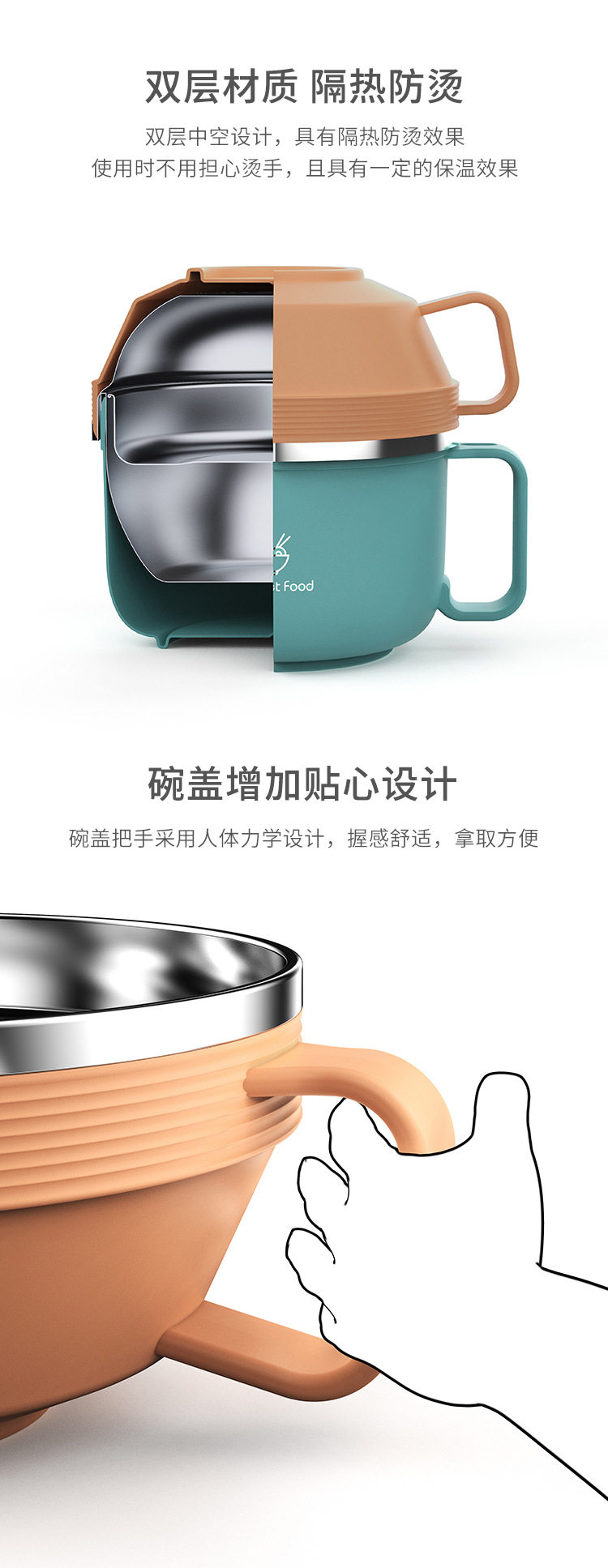 VHM7 도매 304 스테인레스 스틸 휴대용 도시락 즉석 국수 그릇 패스트 푸드 컵 학생 어린이 작업 기숙사 도시락 상자
