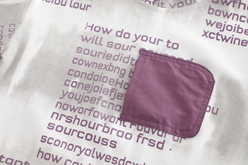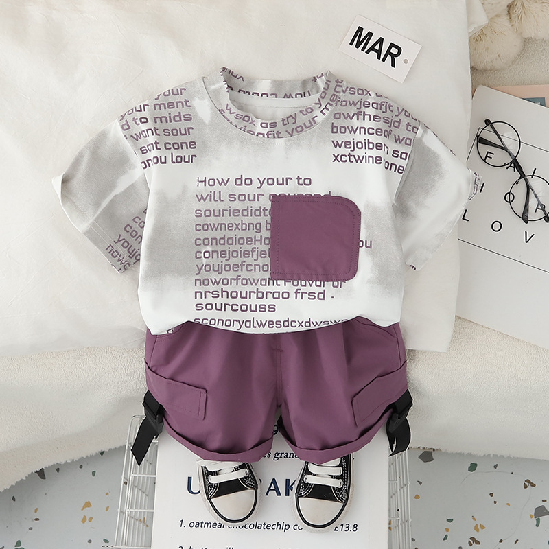 • 보라색 - 영문 소문자 전체 프린트 - 반팔 - 투피스 세트 LQ