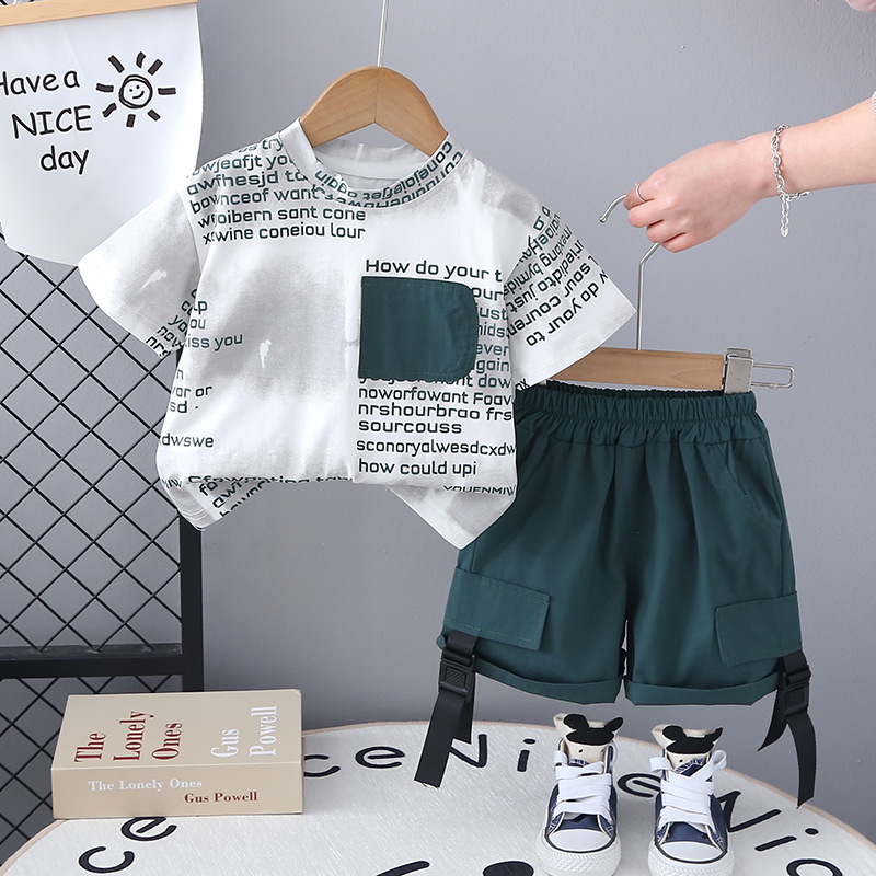 소년 세트 여름 옷 2025 새로운 스타일 아기 여름 옷 유행 어린이 여름 반팔 캐주얼 투피스 세트