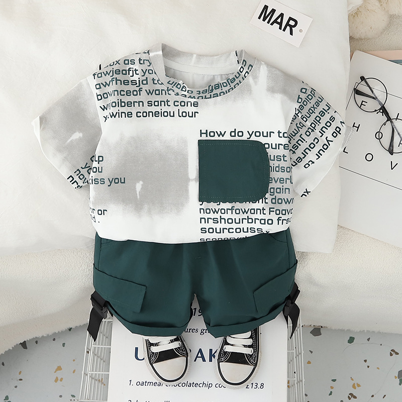 • 그린 - 영문 소문자 전체 프린트 - 반팔 - 투피스 세트 LQ