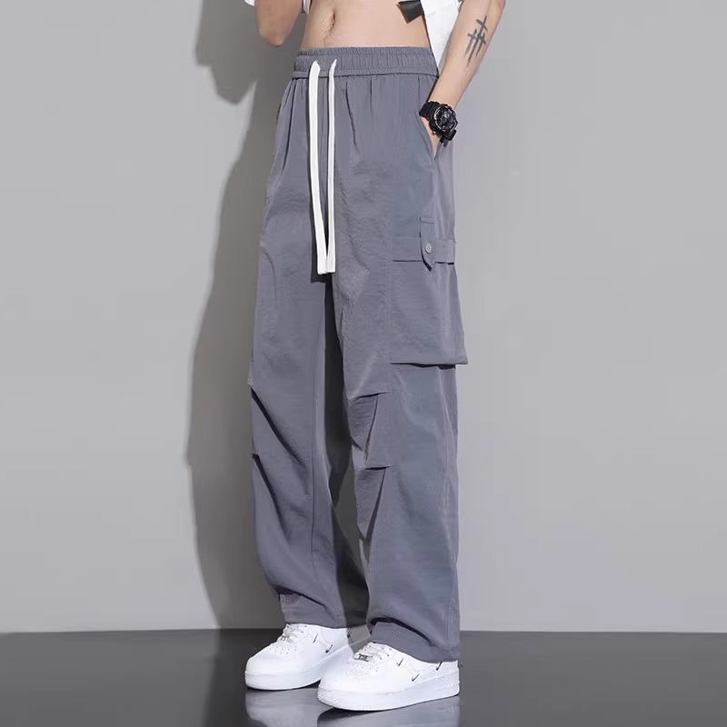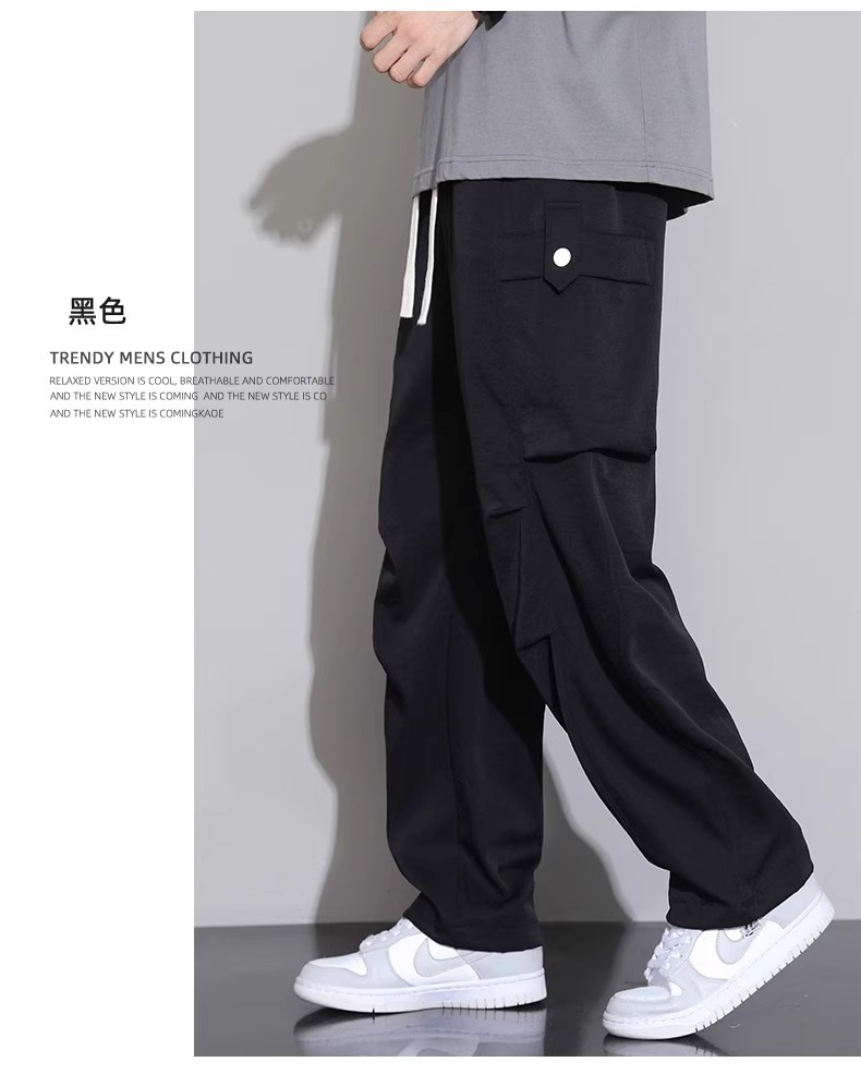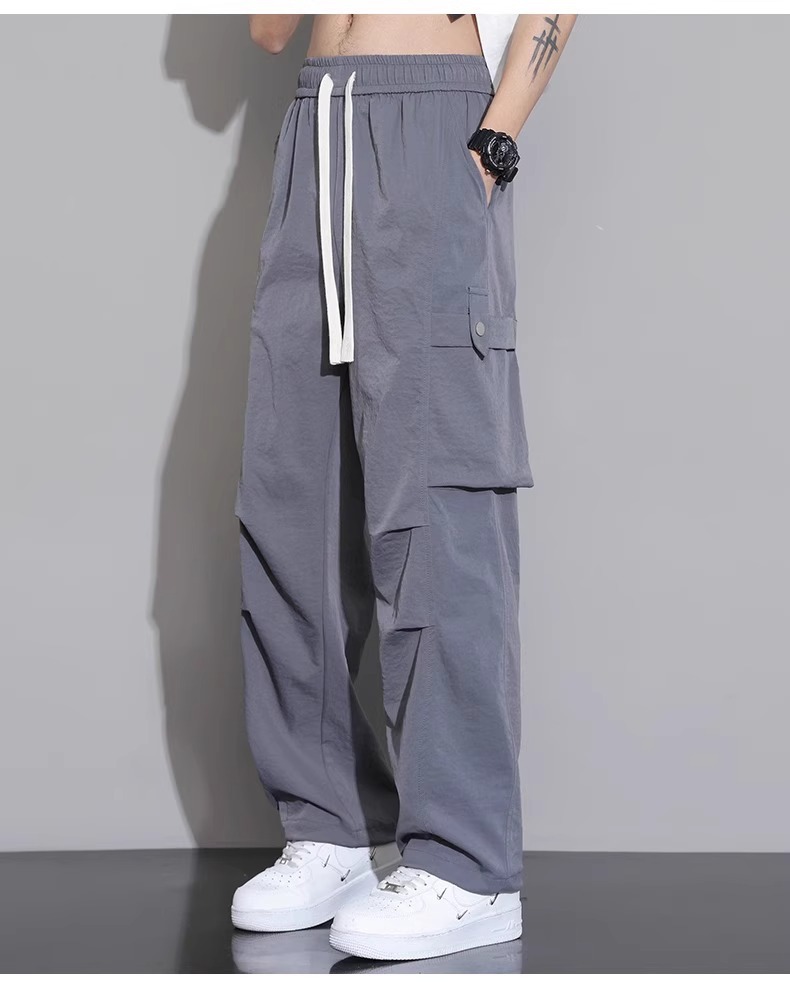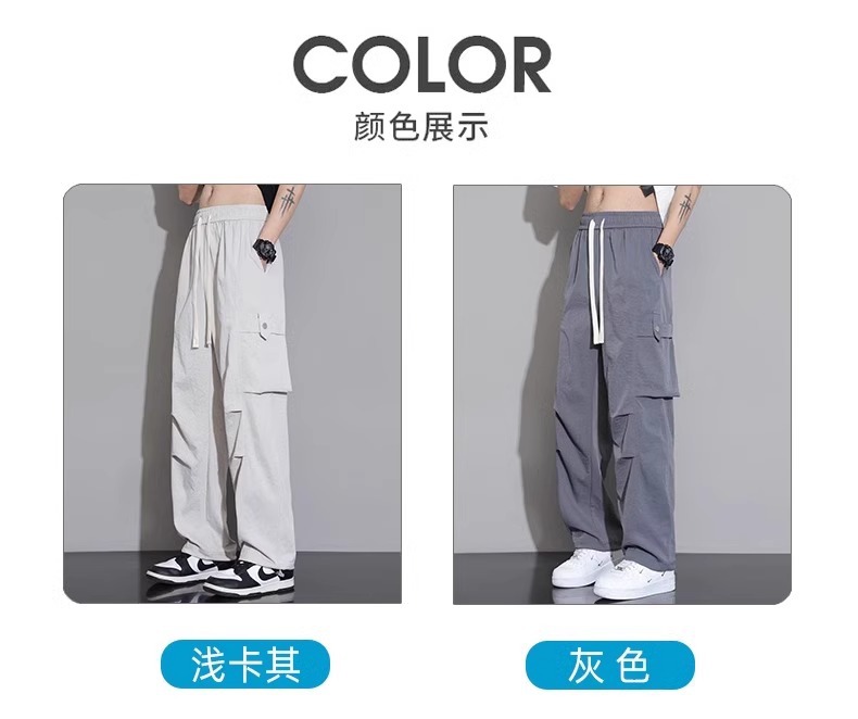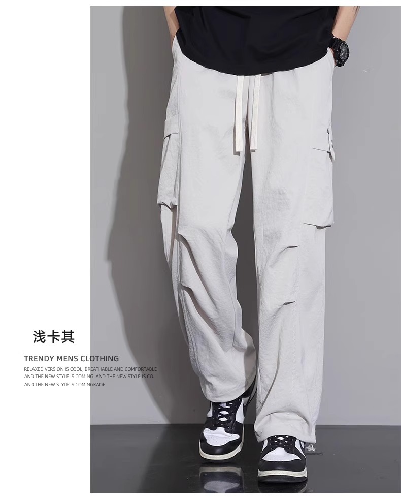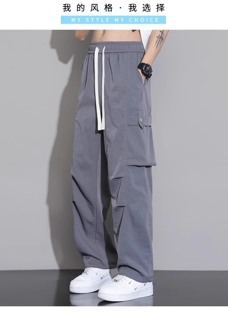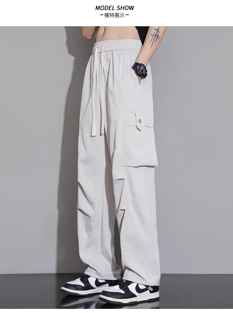NASA 아이스 실크 빠른 건조 캐주얼 바지 남자 여름 얇은 새로운 느슨한 스트레이트 바지 여름 흰색 바지스토어 가기