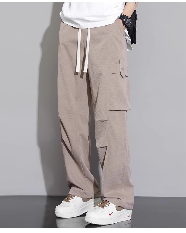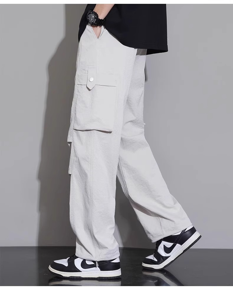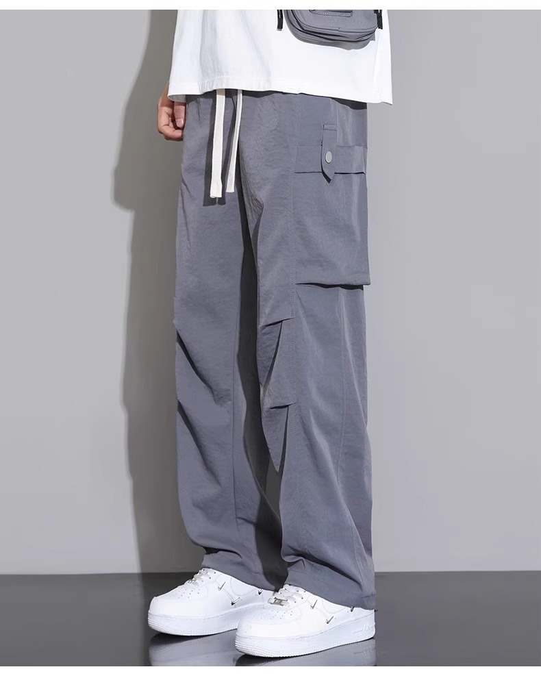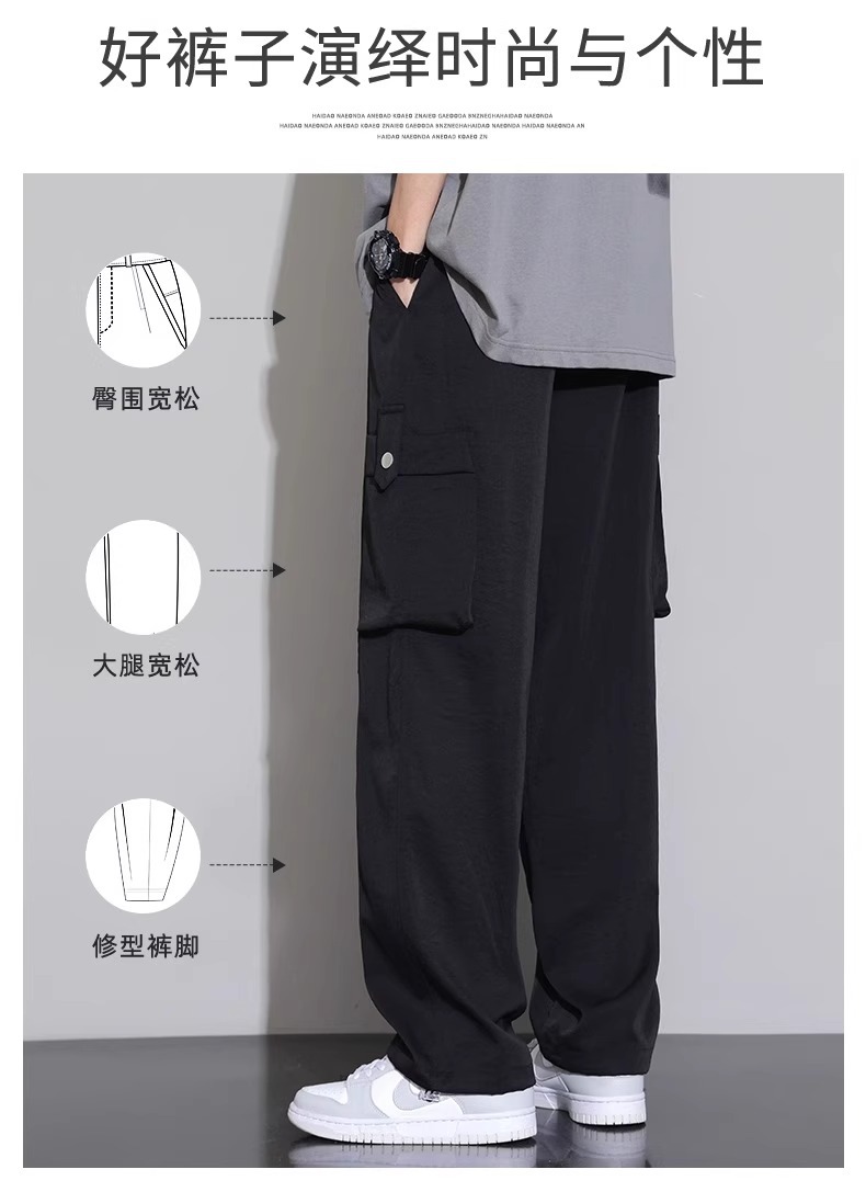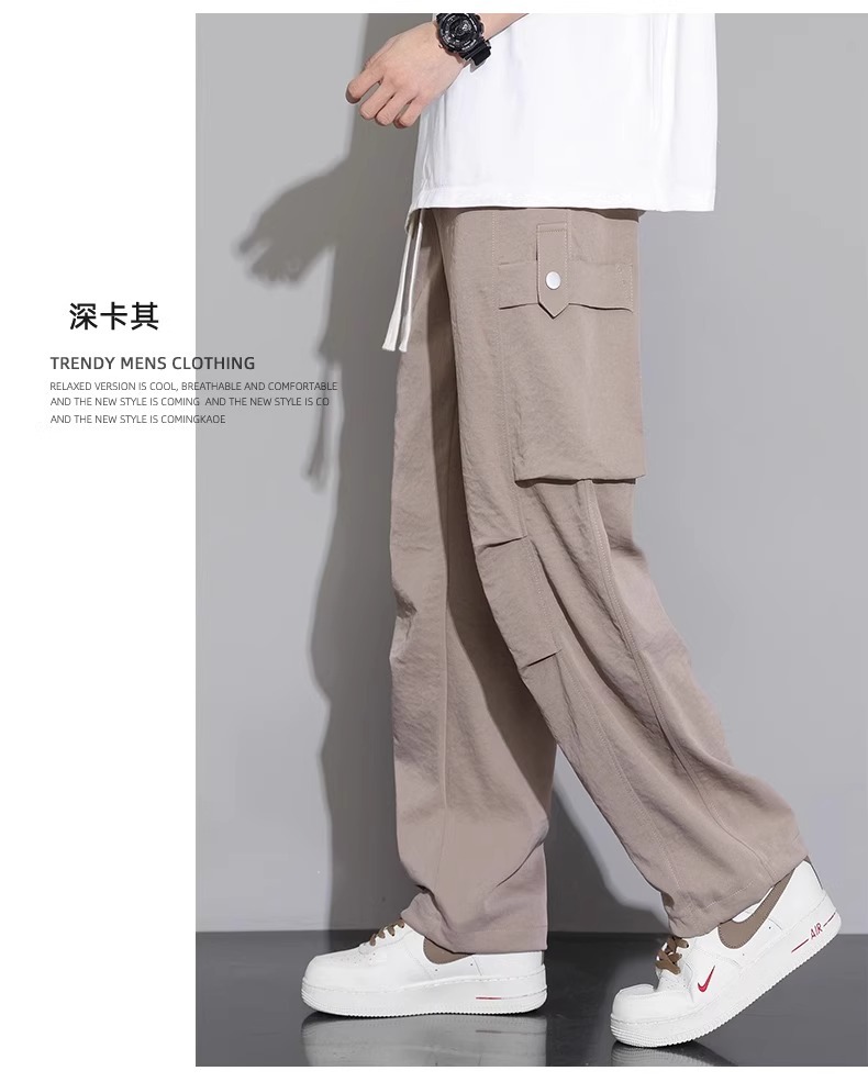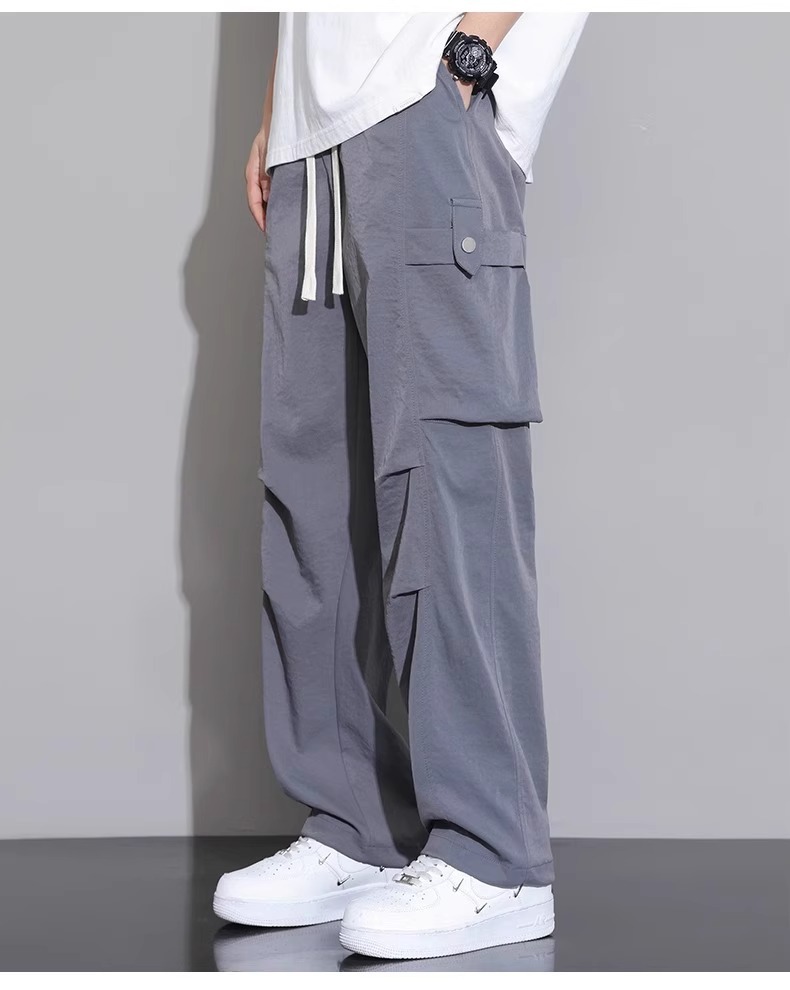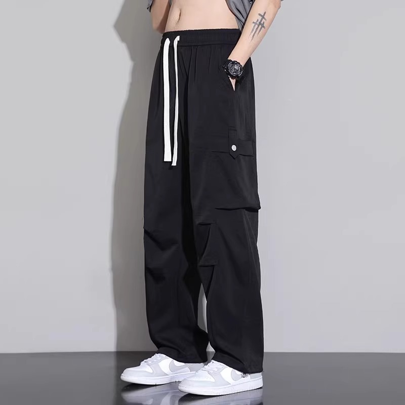 NASA 아이스 실크 빠른 건조 캐주얼 바지 남자 여름 얇은 새로운 느슨한 스트레이트 바지 여름 흰색 바지스토어 가기