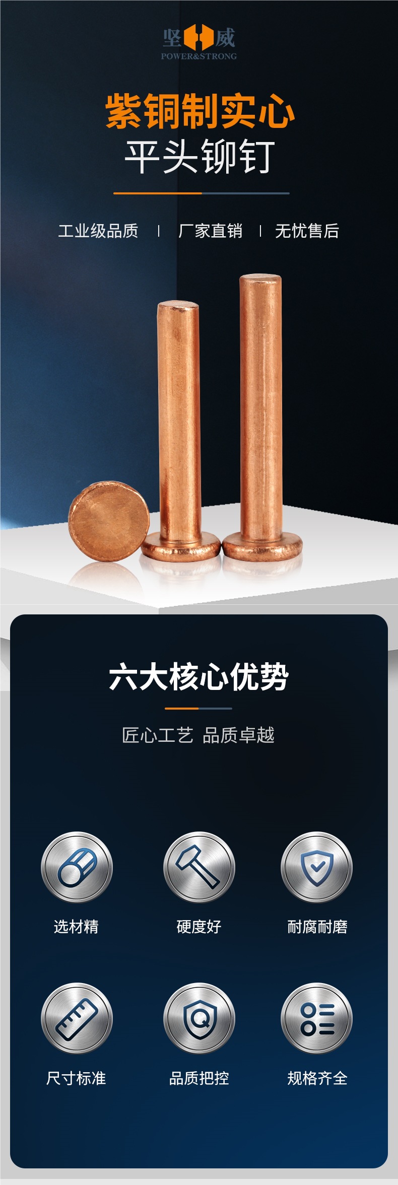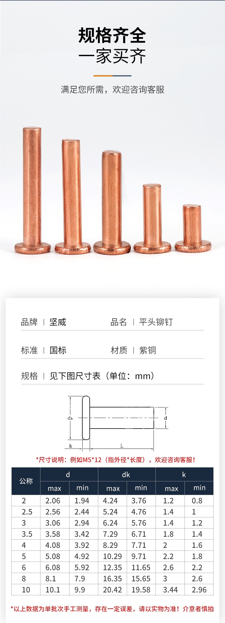 구리 리벳 플랫 헤드 솔리드 리벳 플랫 캡 구리 네일 타악기 플랫 라운드 헤드 나사 M2M2.5M3M4M5M6M8