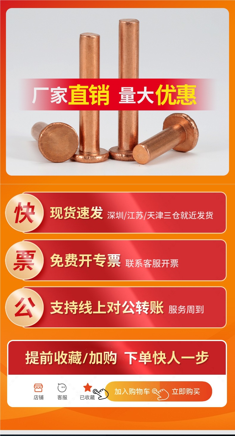 구리 리벳 플랫 헤드 솔리드 리벳 플랫 캡 구리 네일 타악기 플랫 라운드 헤드 나사 M2M2.5M3M4M5M6M8스토어 가기