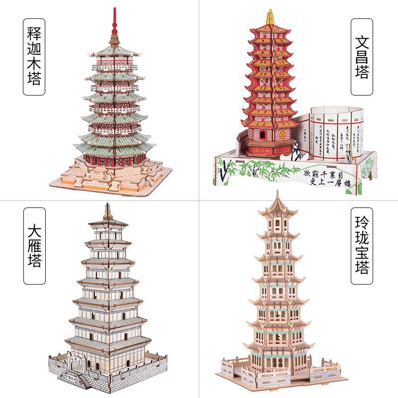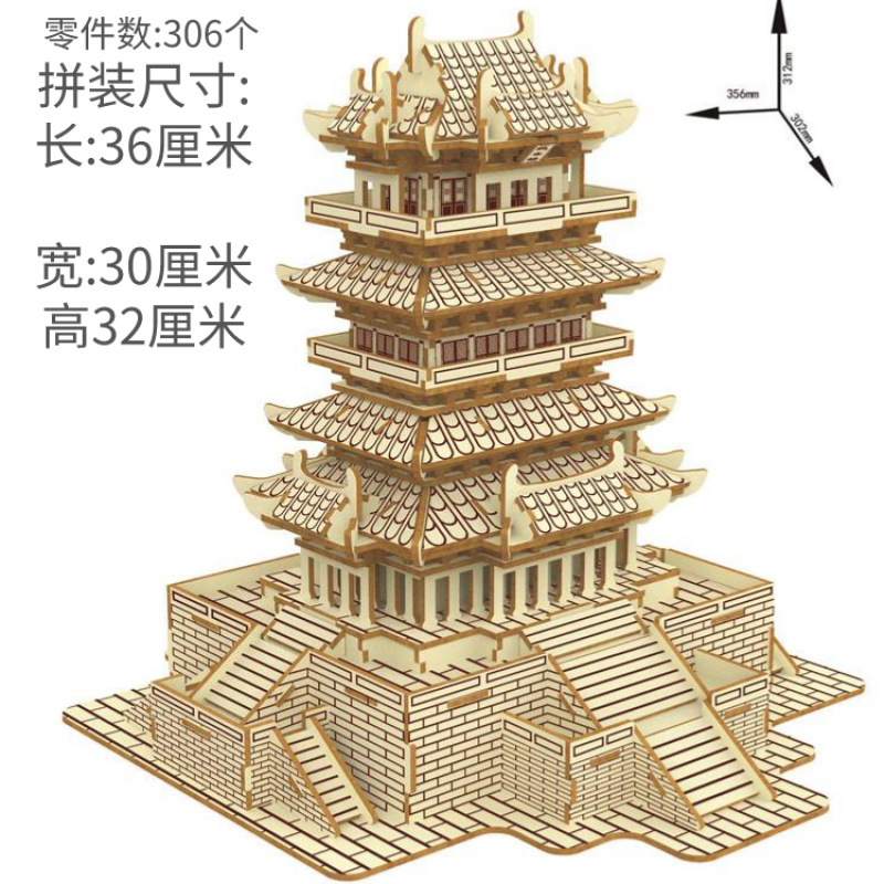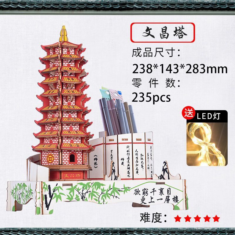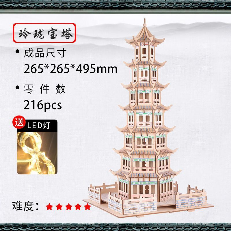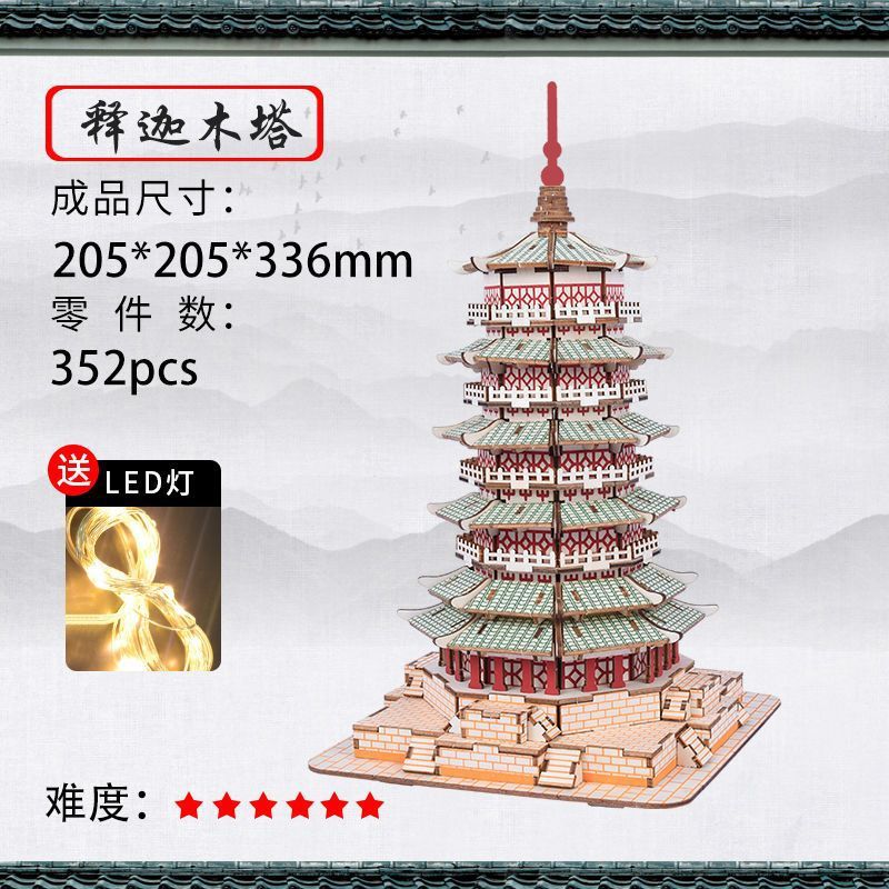• 완제품 - 음악 없음, 조명, 목재 색상이 포함된 Yanyu Tower