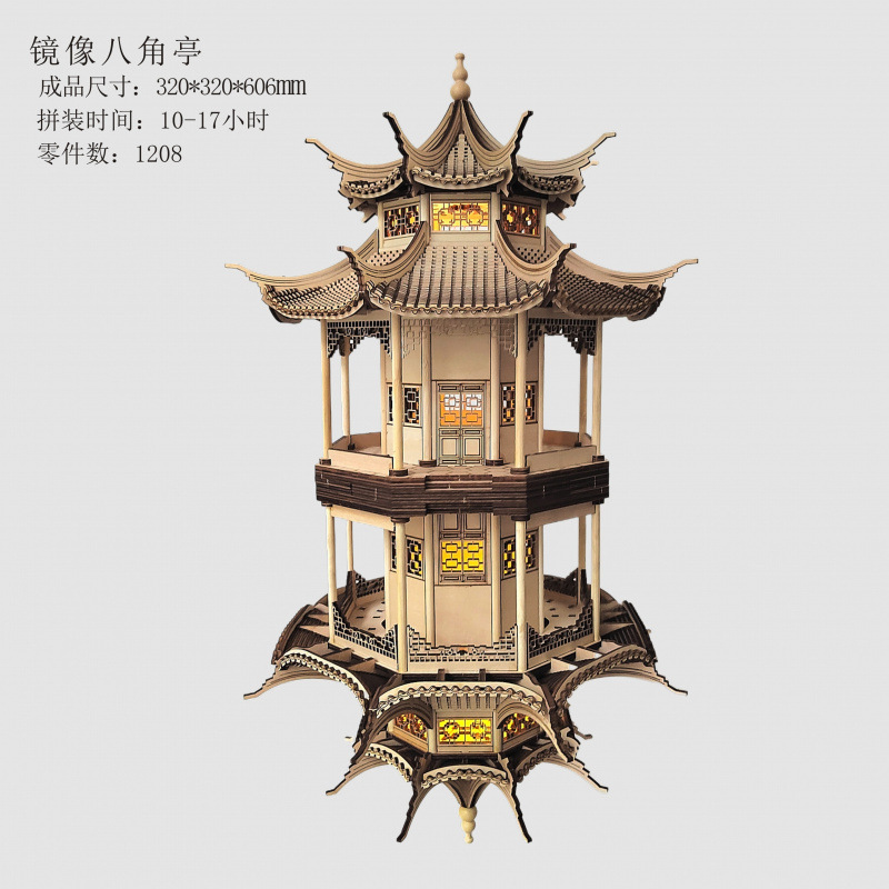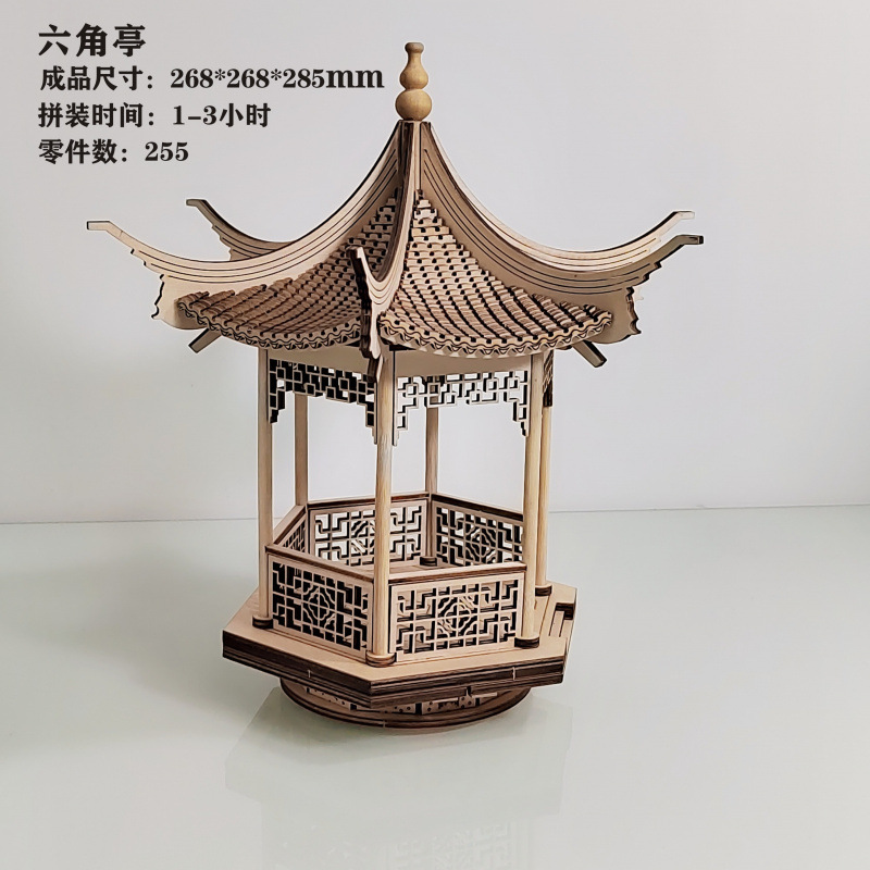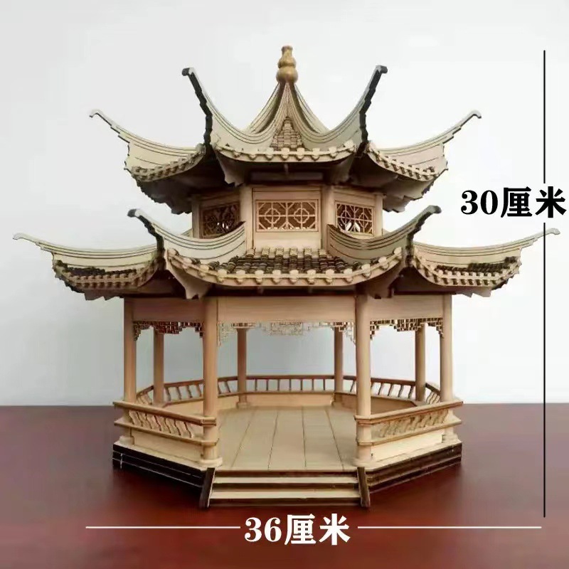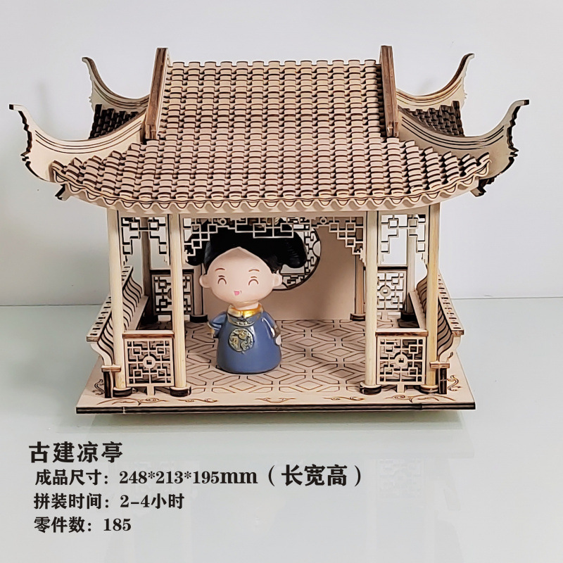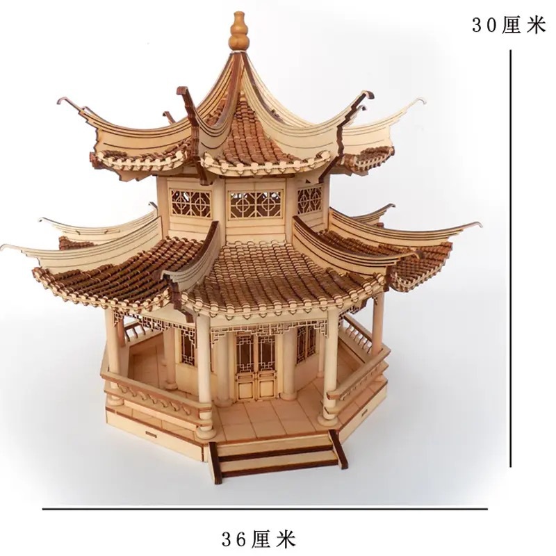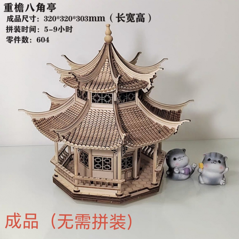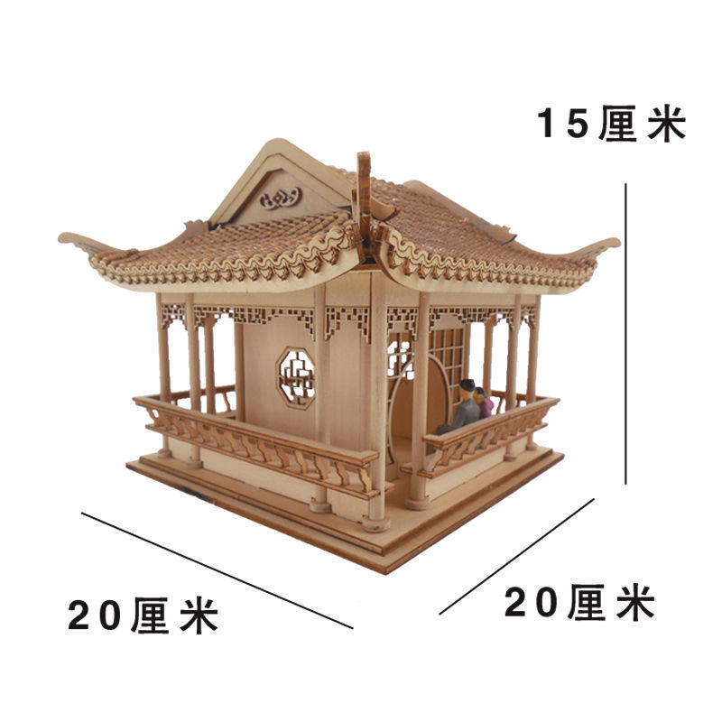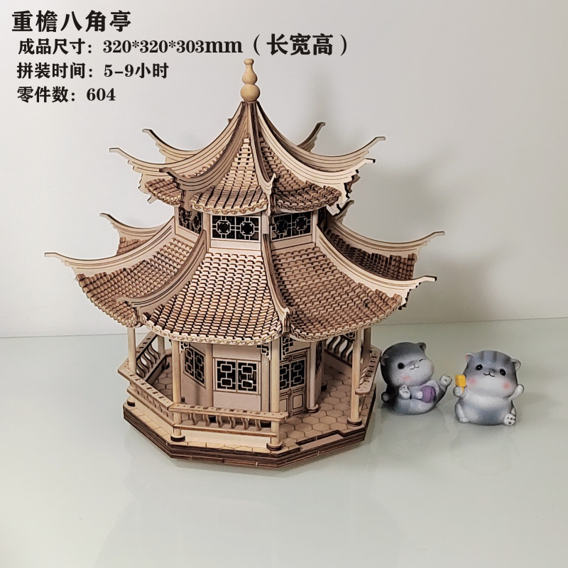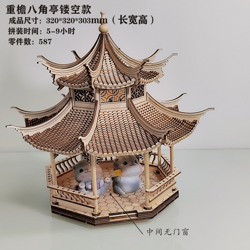 고대 건축물의 목조 조립식 건축물, 앤티크 스타일의 문, 목조 조립식 팔각정, 미니어처 모델 DIY 하우스