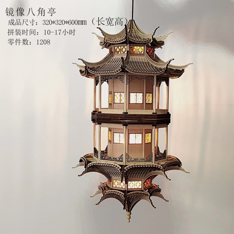 • 빛이 있는 중연 팔각형 파빌리온 중공 모델