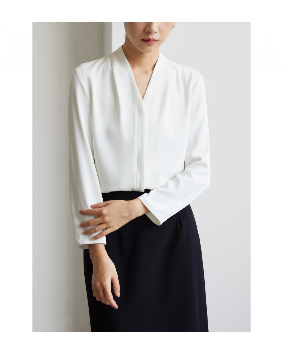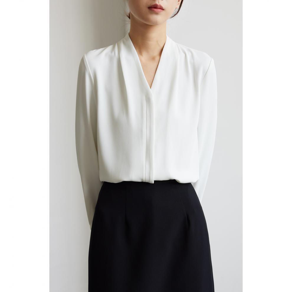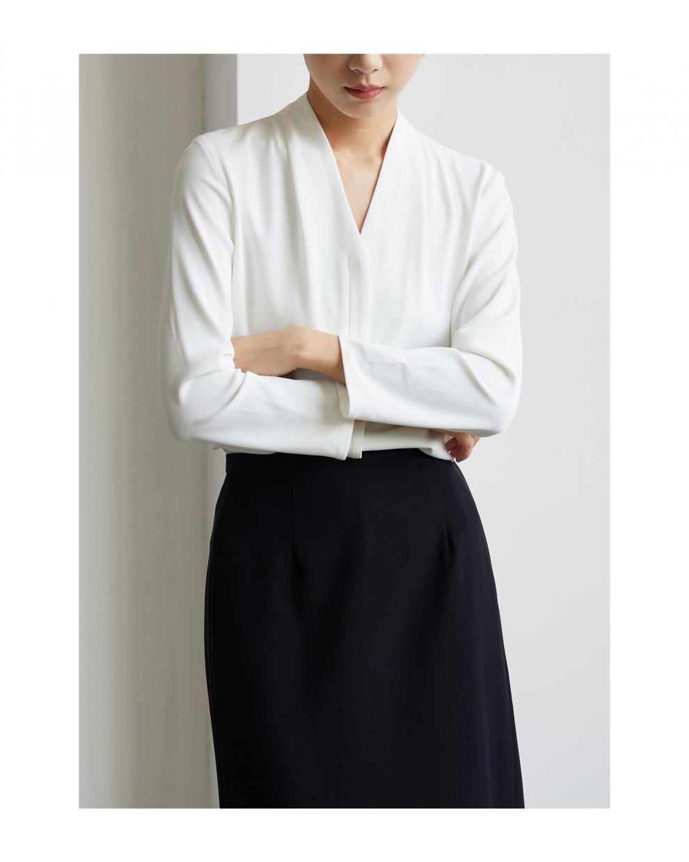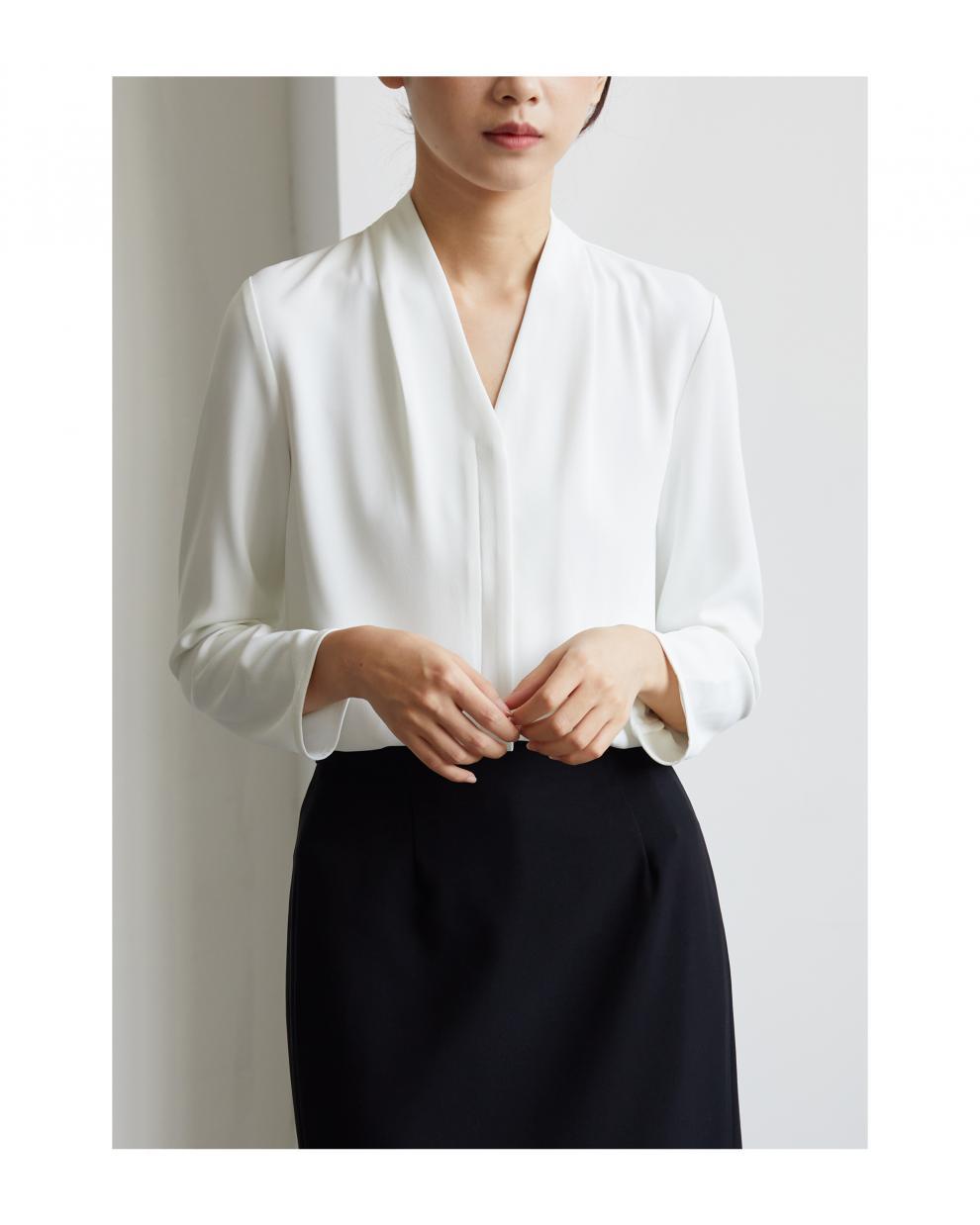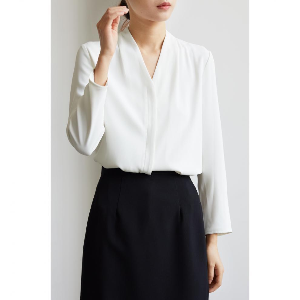 고급 긴팔 셔츠 여자의 2025 봄 새 우유 화이트 우아한 V 넥 세련된 탑 OL 유행 chic스토어 가기