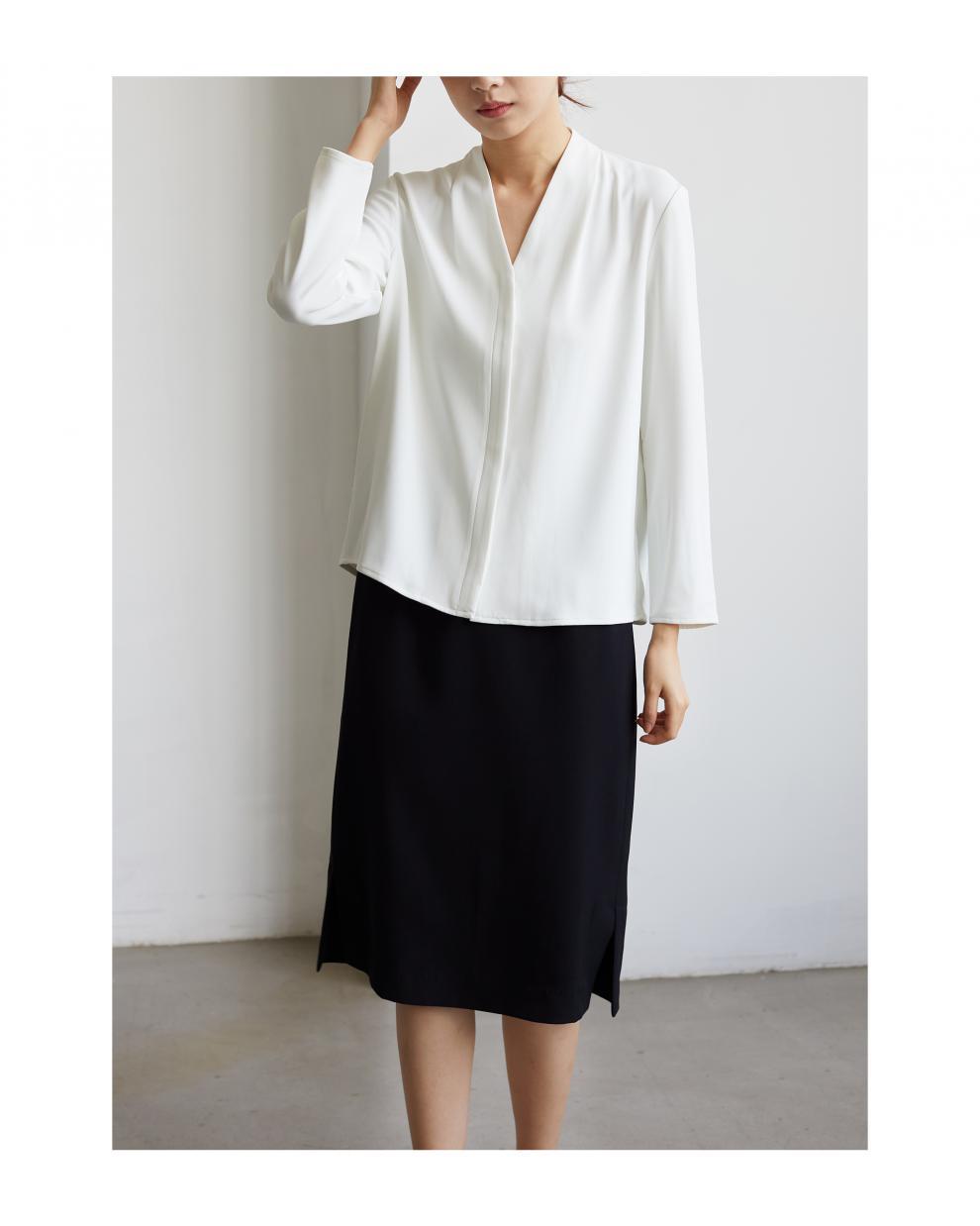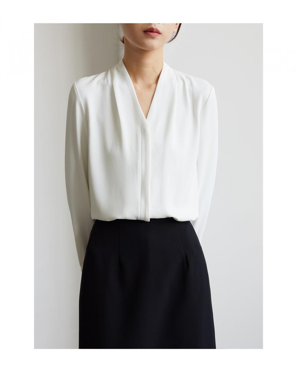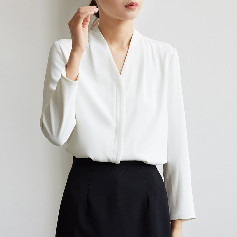 고급 긴팔 셔츠 여자의 2025 봄 새 우유 화이트 우아한 V 넥 세련된 탑 OL 유행 chic