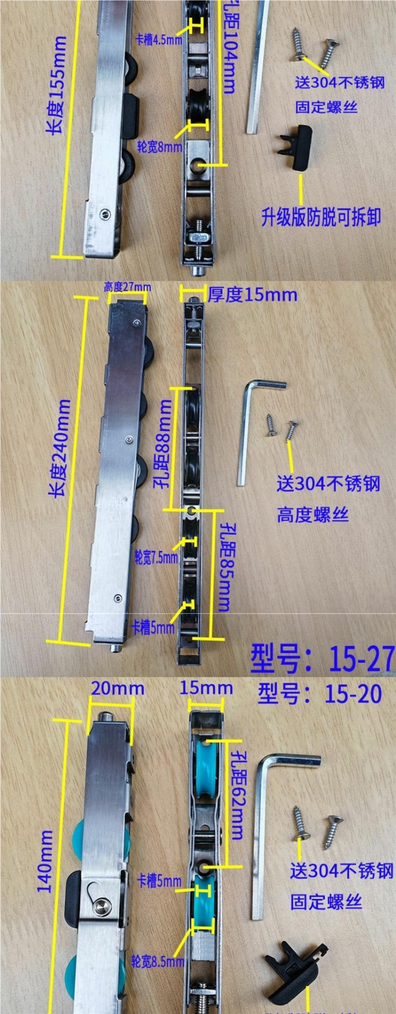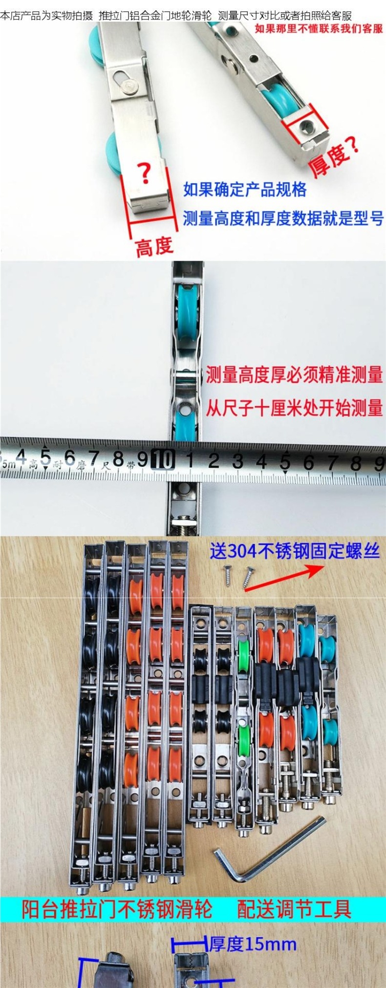 슬라이딩 도어 도르래 스테인레스 스틸 발코니 주방 슬라이딩 유리 슬라이딩 도어 하부 풀리 롤러 알루미늄 합금 도어 도르래 부품
