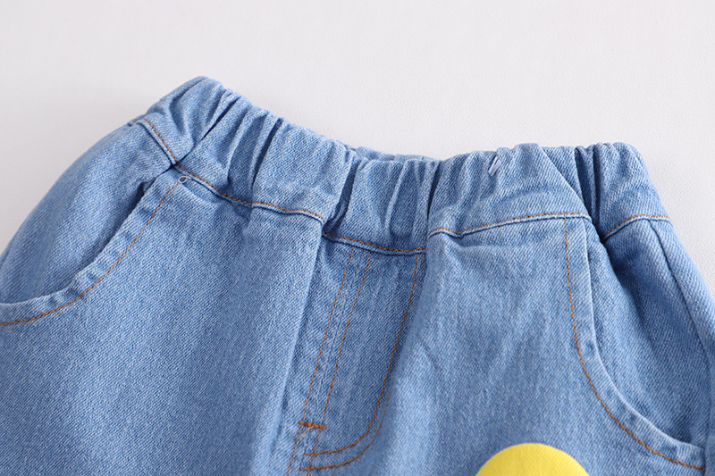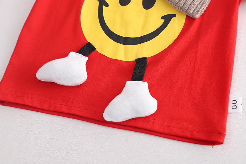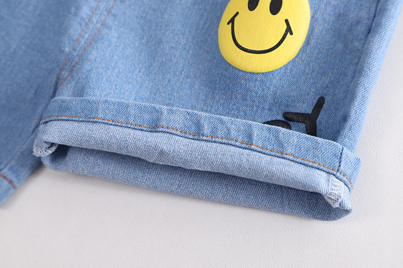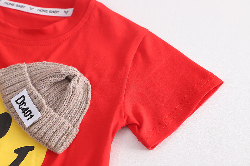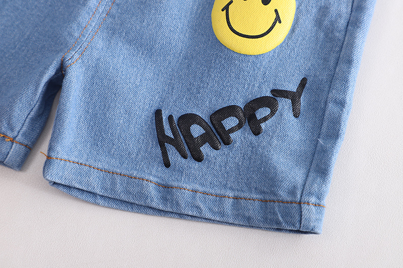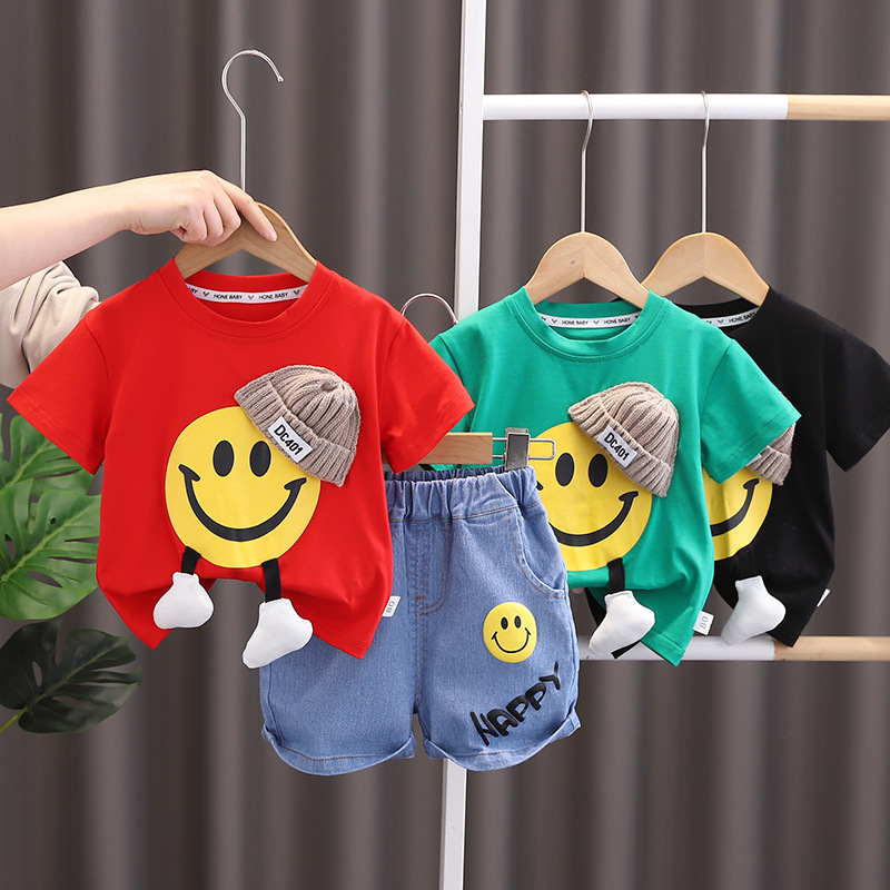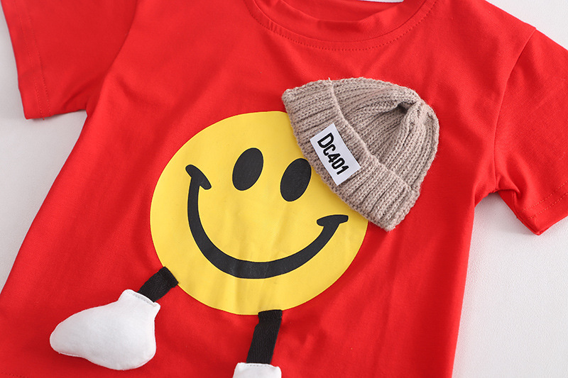 도매 여름 새로운 소년과 소녀 아기 만화 웃는 얼굴 짧은 소매 세트 통기성 얇은 여름 옷 어린이 옷 조수스토어 가기