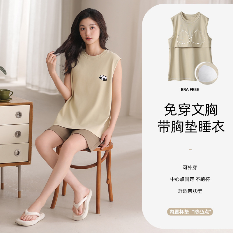 여름 모달 파자마 여성 조끼 캐주얼 달콤한 자식 가슴 패드 잠옷 반바지 편안한 의상 홈 옷