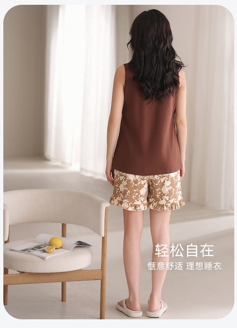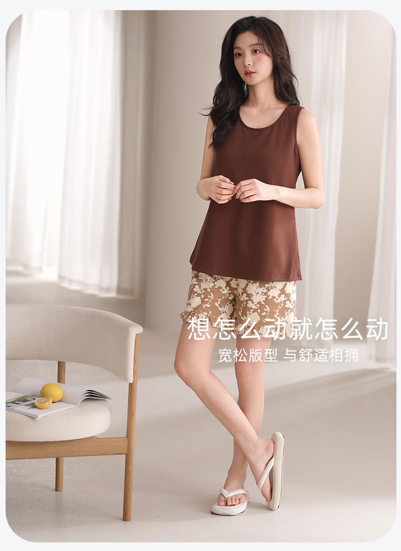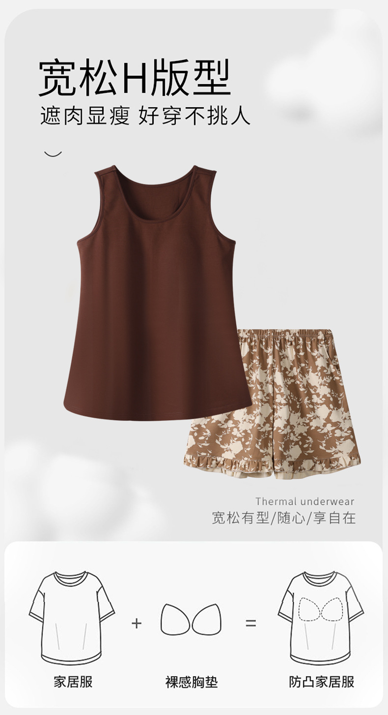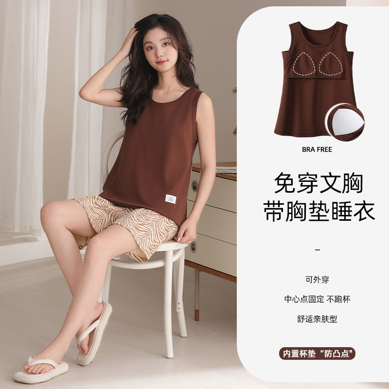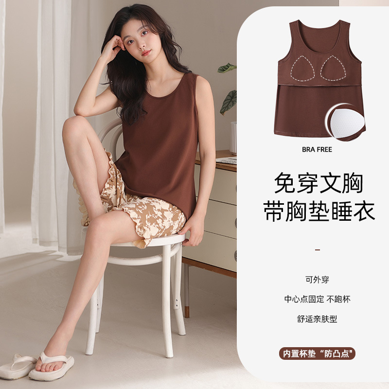 여름 모달 파자마 여성 조끼 캐주얼 달콤한 자식 가슴 패드 잠옷 반바지 편안한 의상 홈 옷스토어 가기