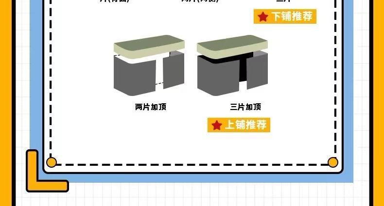 • [브래킷 없음] 천 2개 + 사각 상판(3면 둘러싸임)