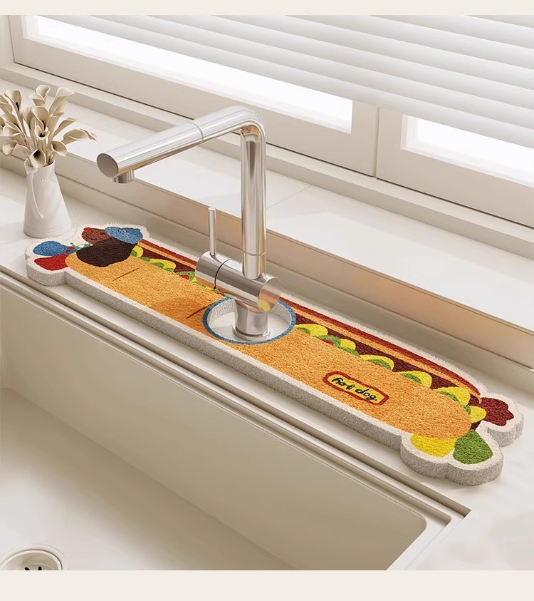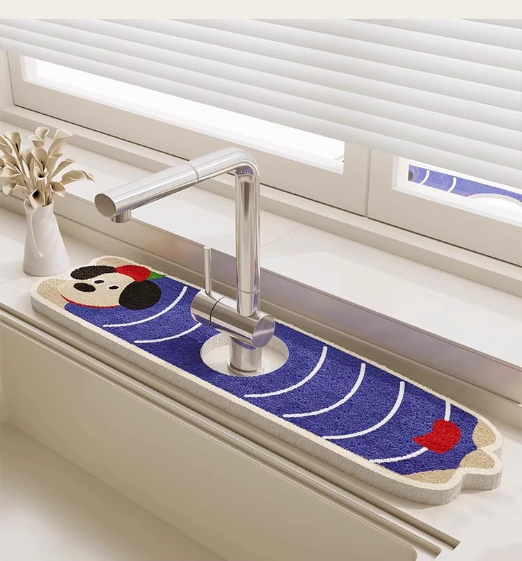 만화 주방 수도꼭지 배수 매트 목재 펄프 면 흡수성 매트 욕실 세면대 표면 스플래쉬 방지 매트