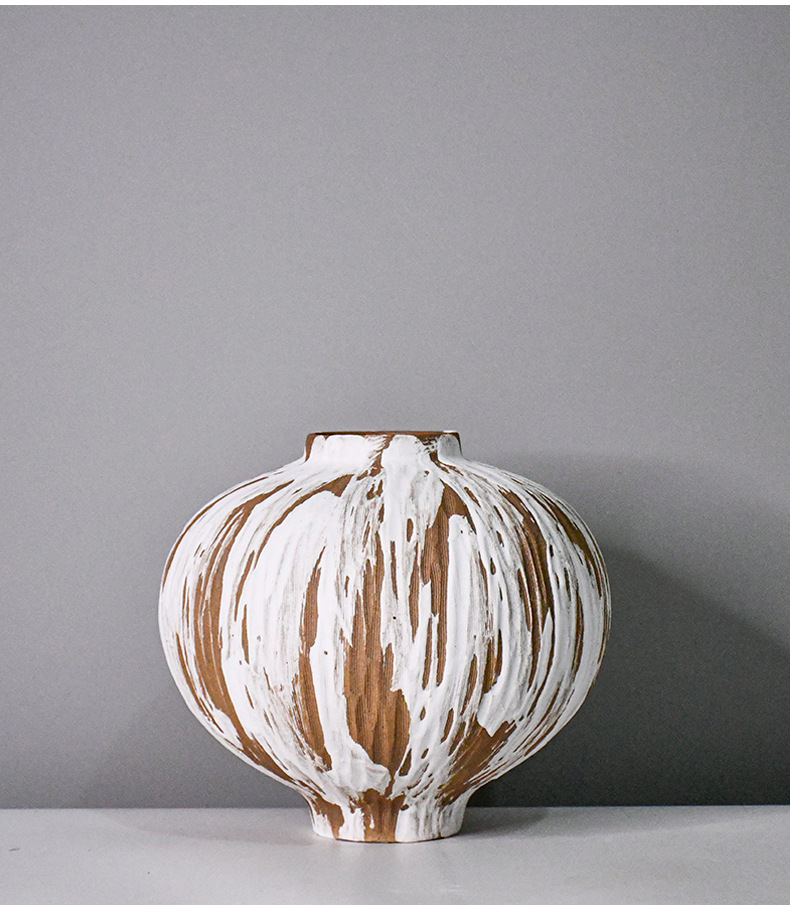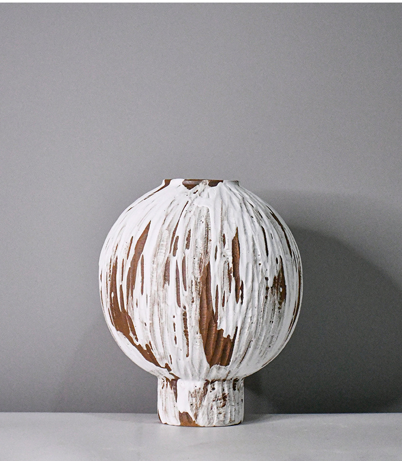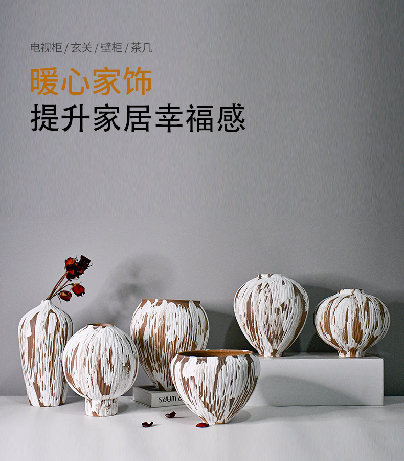 Jingdezhen Ji Feng Zen 꽃 꽃병 큰 거친 도자기 항아리 수경 꽃 정리 홈스테이 호텔 레트로 향수 세라믹 꽃병스토어 가기