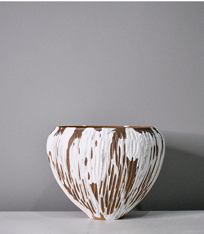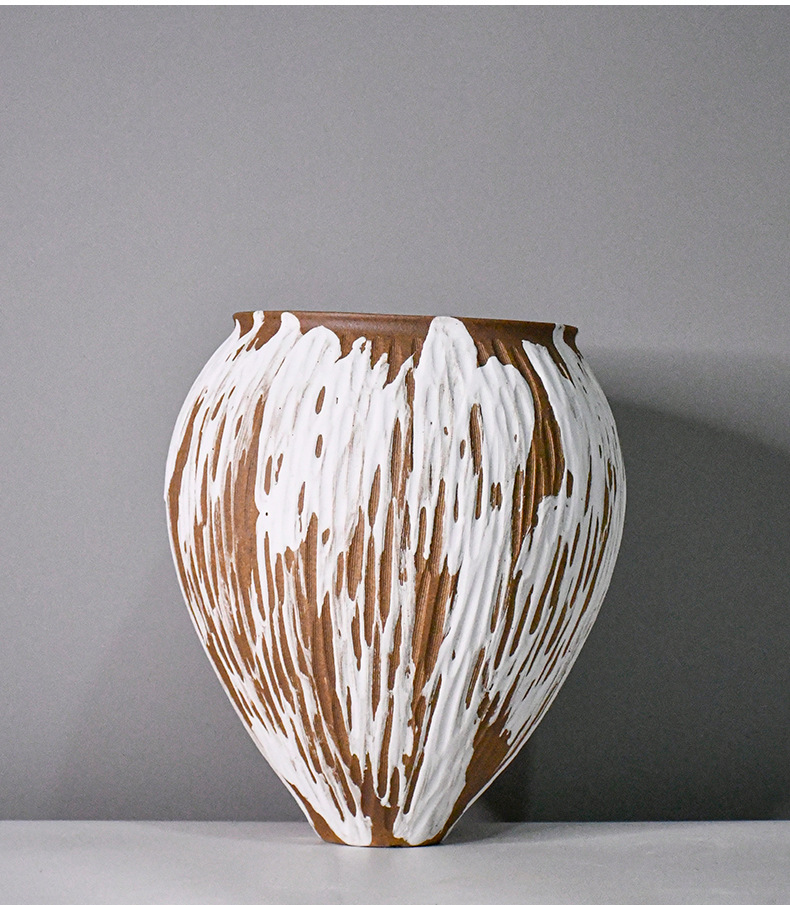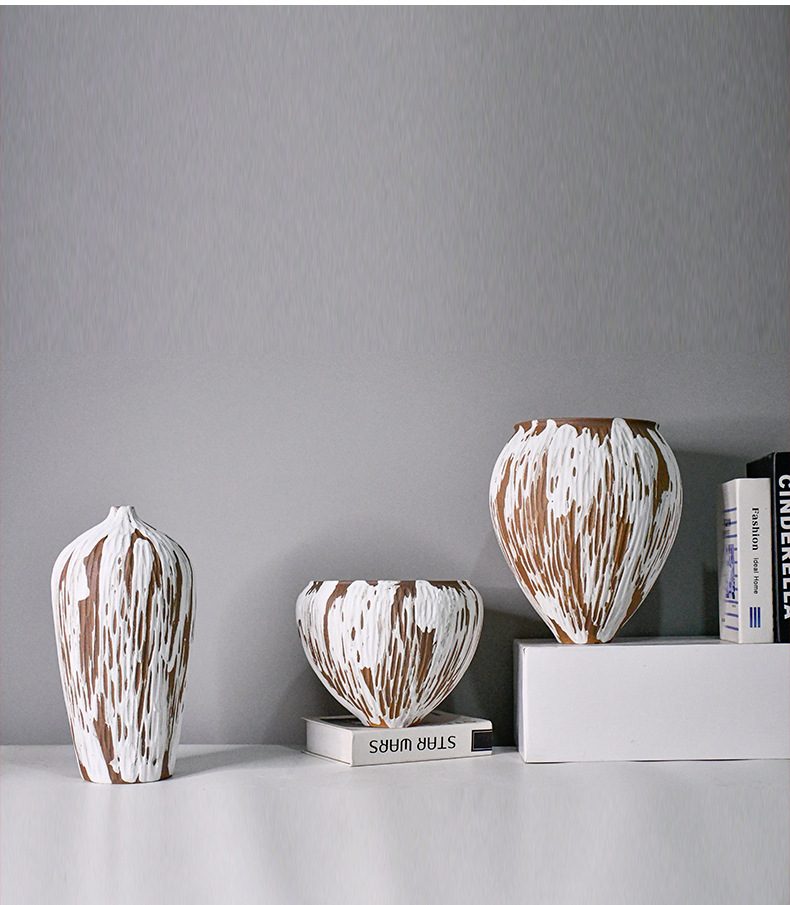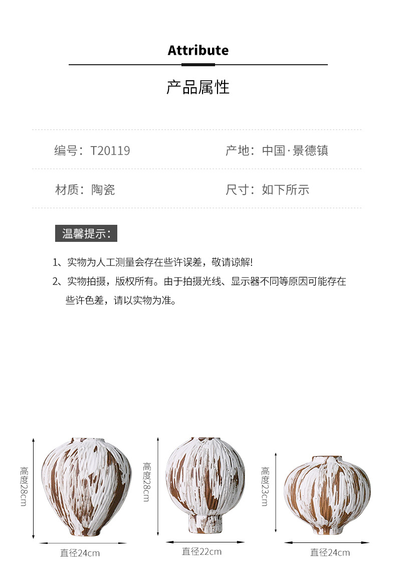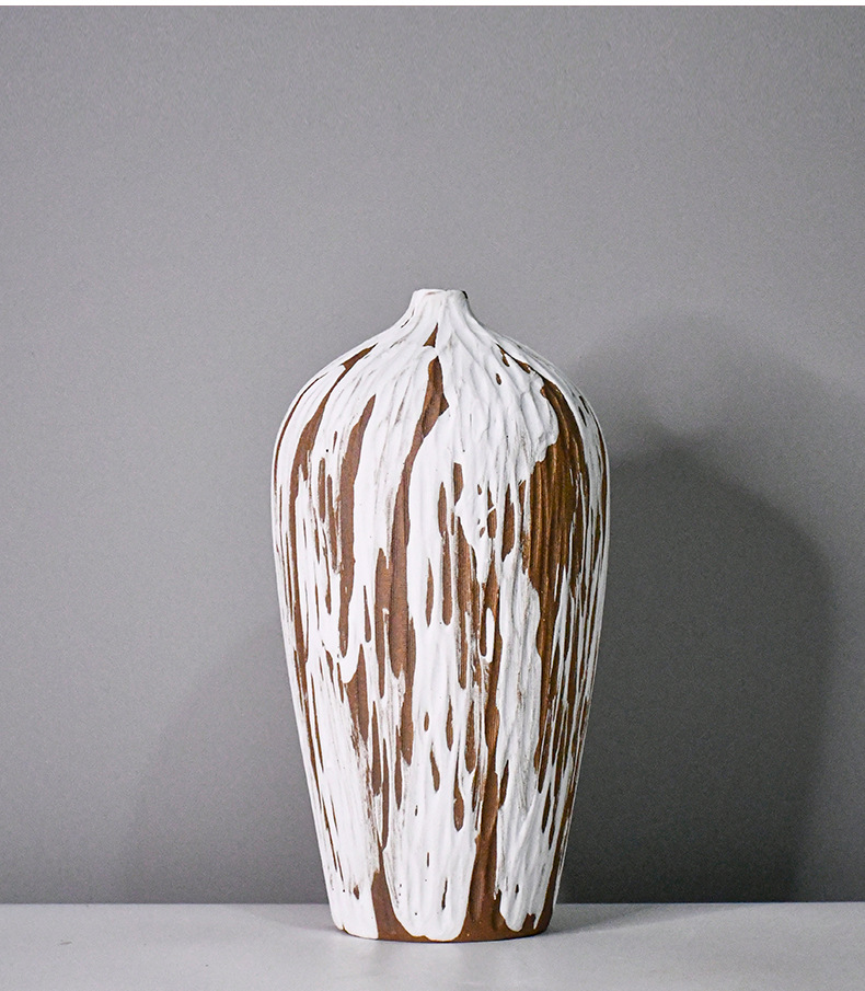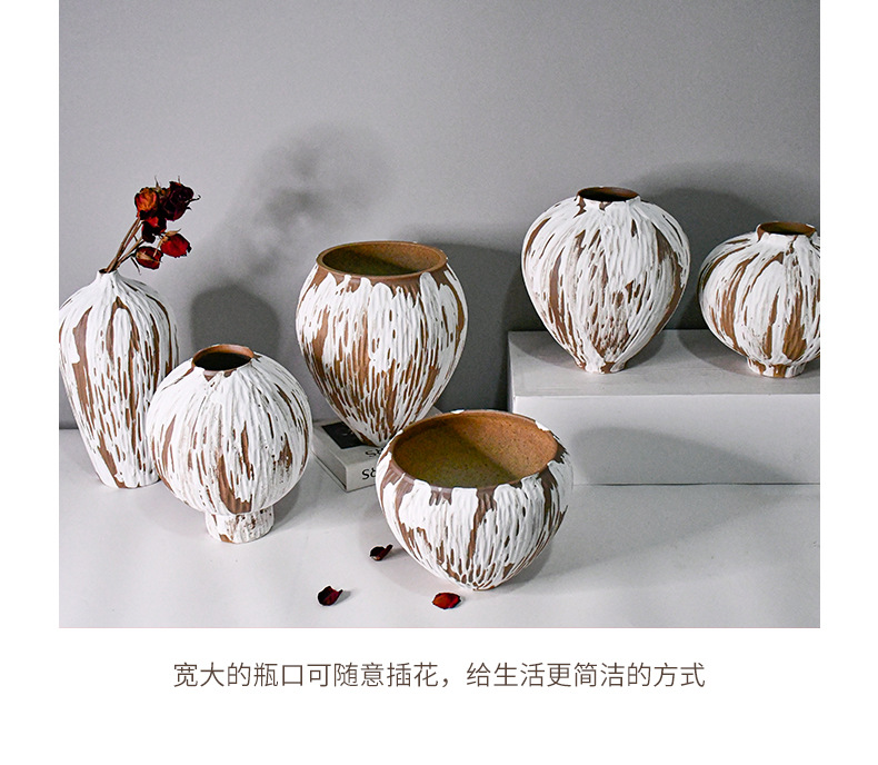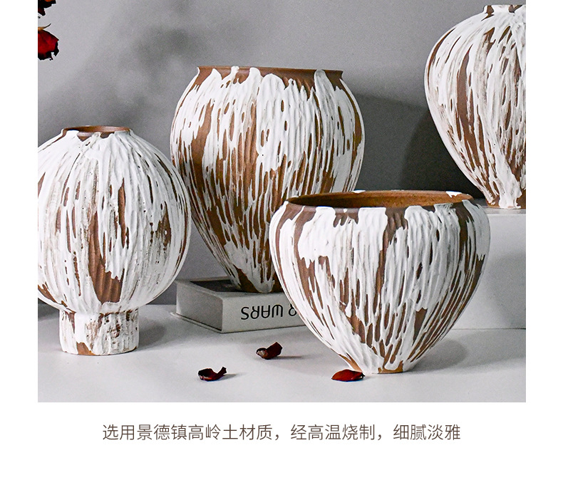 Jingdezhen Ji Feng Zen 꽃 꽃병 큰 거친 도자기 항아리 수경 꽃 정리 홈스테이 호텔 레트로 향수 세라믹 꽃병
