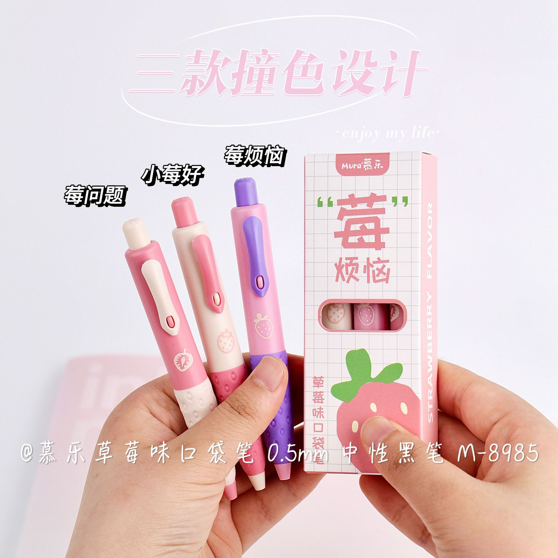 Mule 딸기 포켓 펜 학생 Chubby Dundun 프레스 젤 펜 미니 브러시 펜 높은 색상 값 세트 펜
