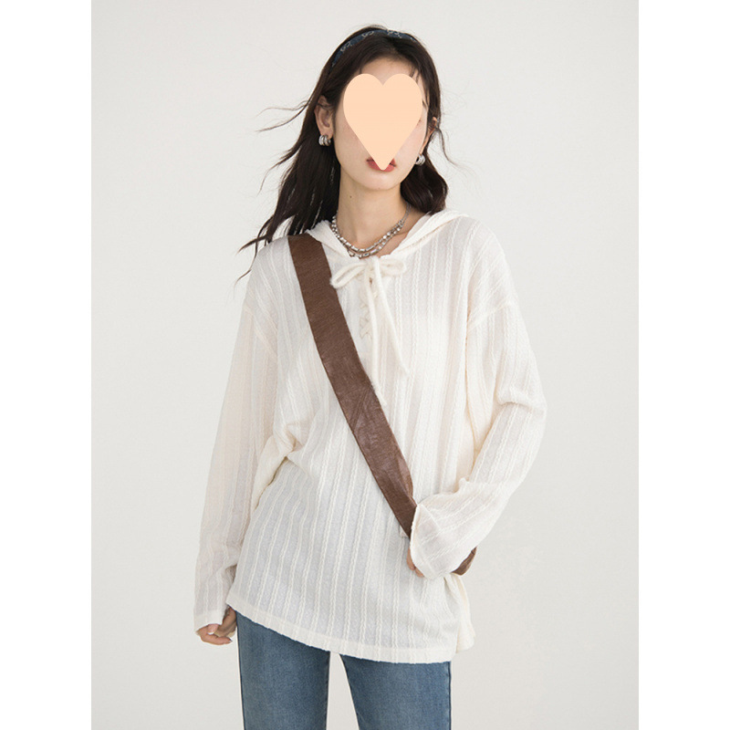 프랑스 트위스트 라이스 살구색 셔츠 여성 후드 대학 스타일 캐주얼 긴 소매 재킷 2025 가을 새로운 폭발