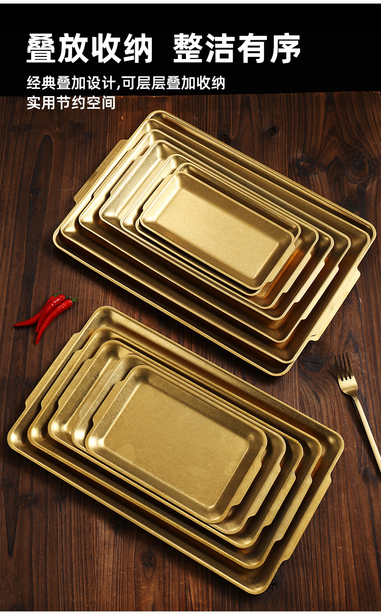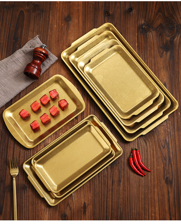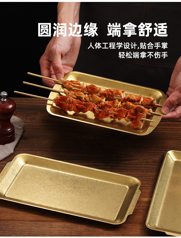 빈티지 황금 뜨거운 냄비 접시 초밥 플레이트 한국 바베큐 플레이트 새우 슬라이딩 플레이트 쇠고기 플레이트 좁은 가장자리 긴 플레이트