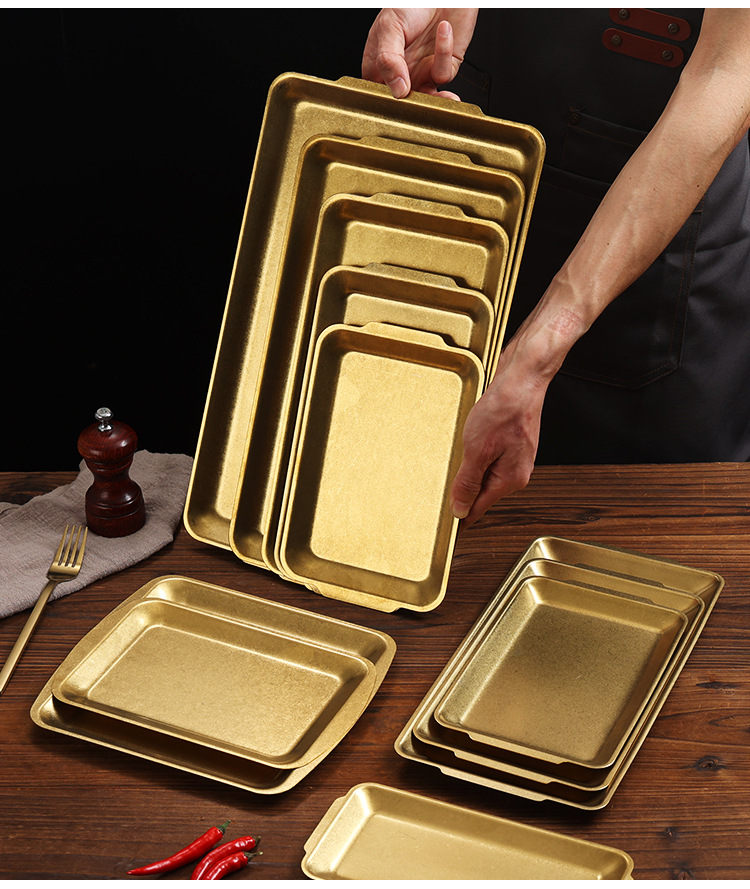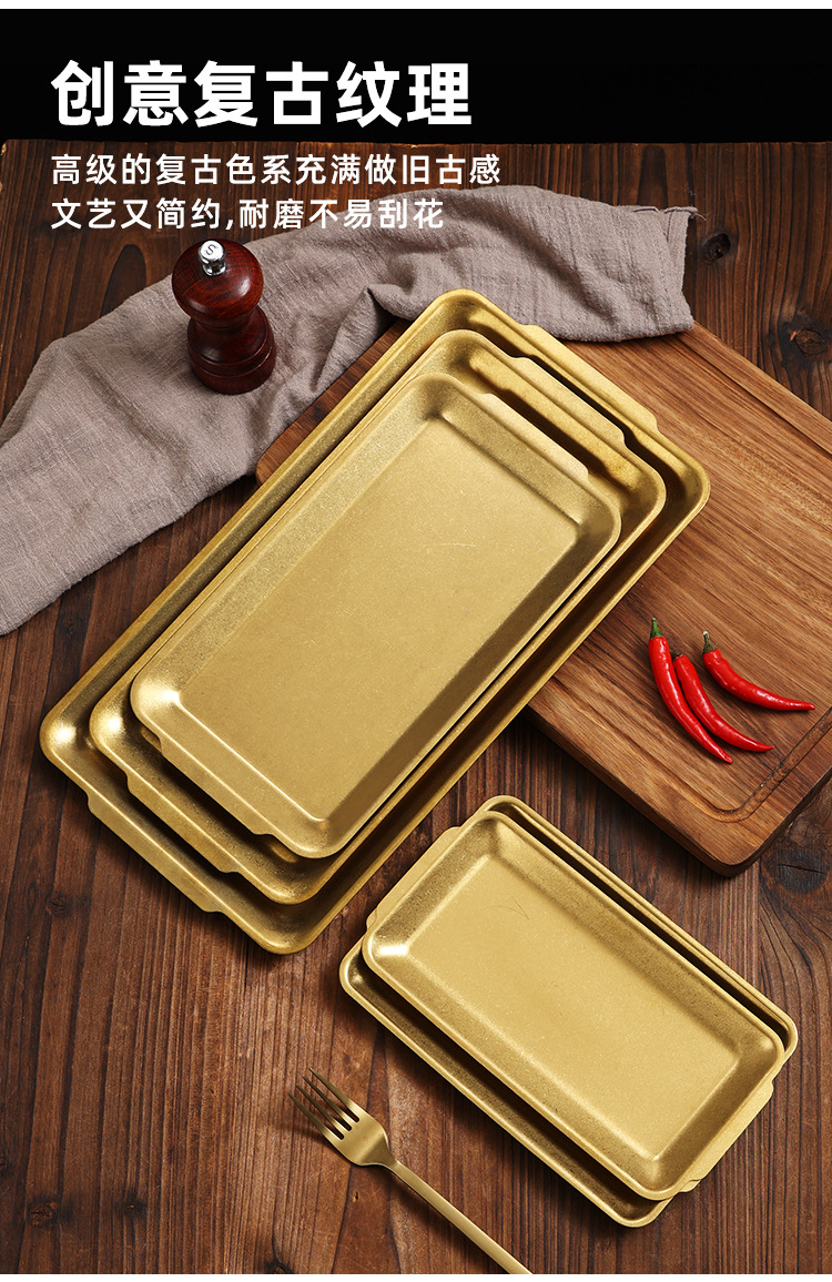 빈티지 황금 뜨거운 냄비 접시 초밥 플레이트 한국 바베큐 플레이트 새우 슬라이딩 플레이트 쇠고기 플레이트 좁은 가장자리 긴 플레이트스토어 가기