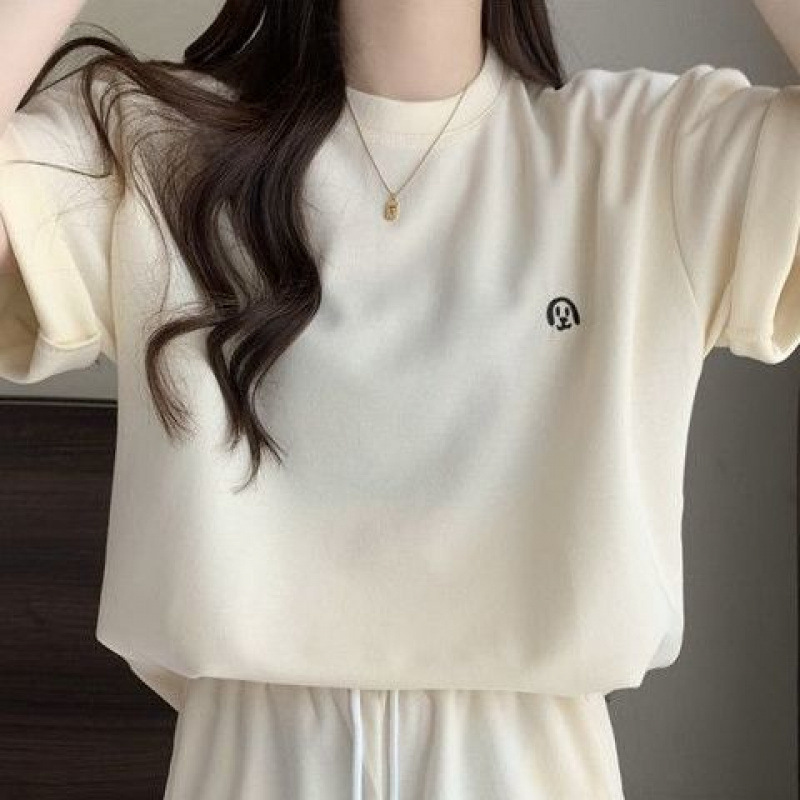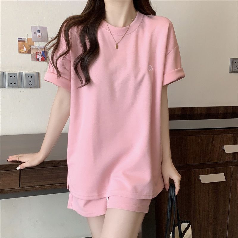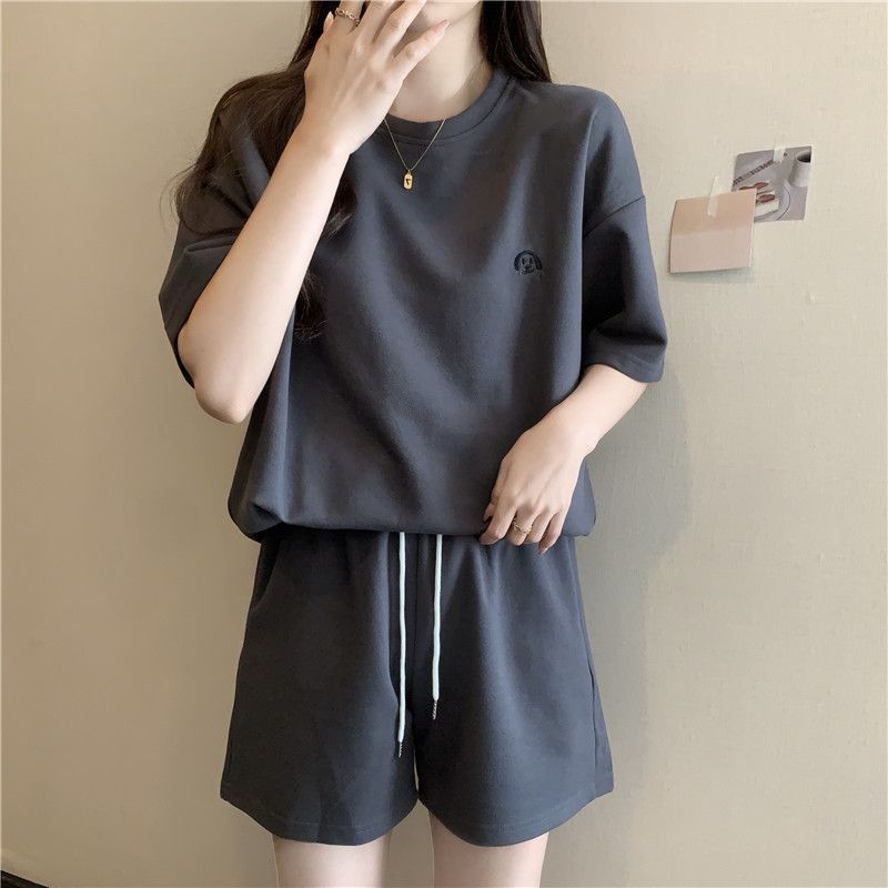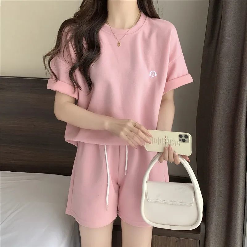 멀티 컬러 여름 세트 여성 학생 2025 새로운 캐주얼 패션 느슨한 간단한 스포츠 반팔 반바지 투피스 세트스토어 가기