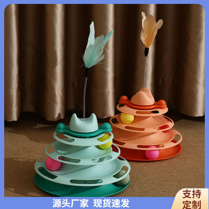 ✅공장 도매 고양이 장난감 하이 고양이 3 층 턴테이블 트랙 공 재미있는 고양이 스틱 깃털 애완 동물 용품스토어 가기