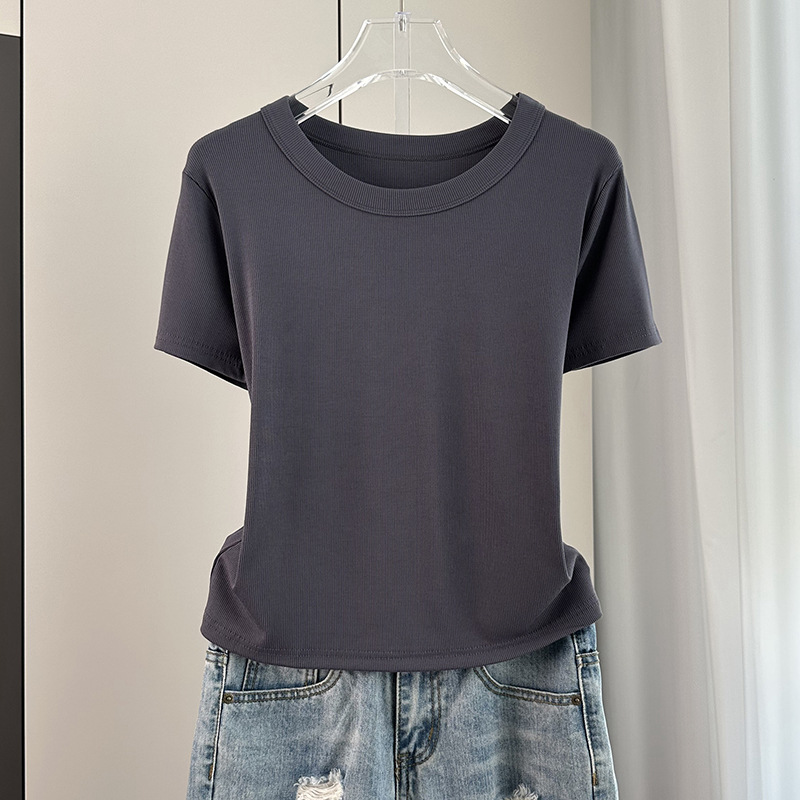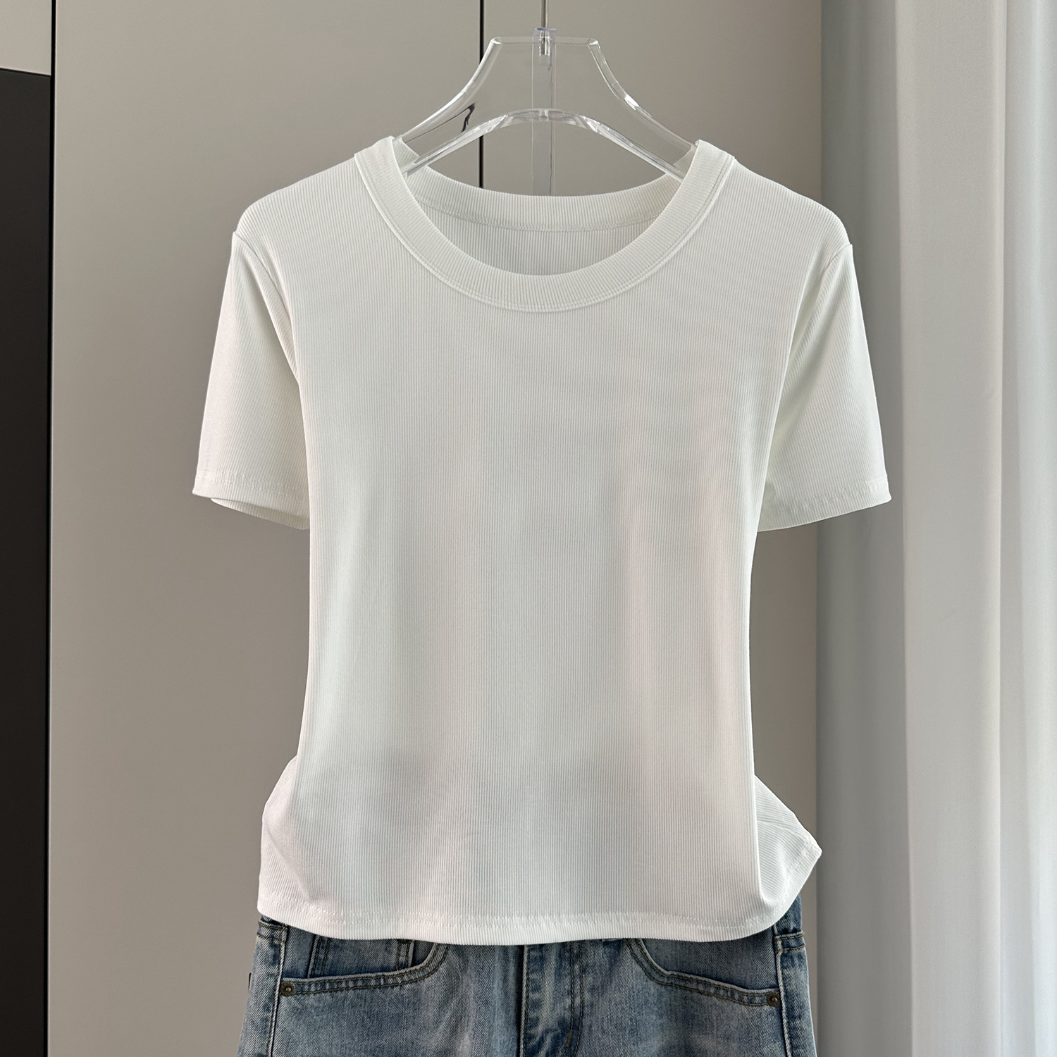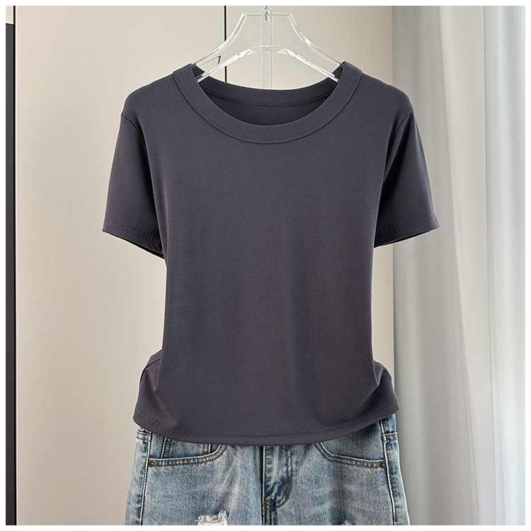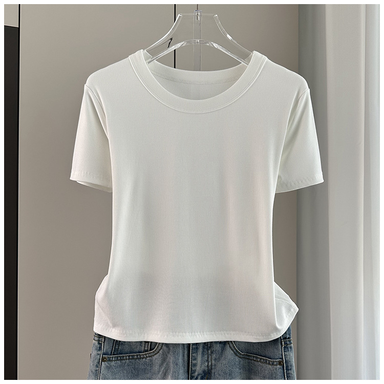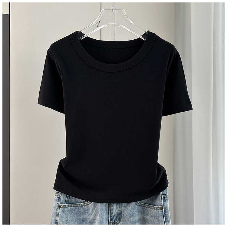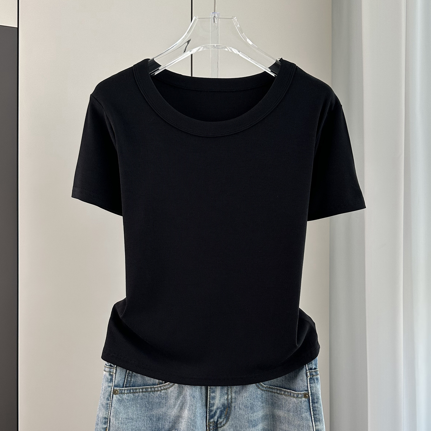 正肩短袖T恤女夏季莫代尔螺纹休闲宽松上衣体恤黑色基础款打底衫