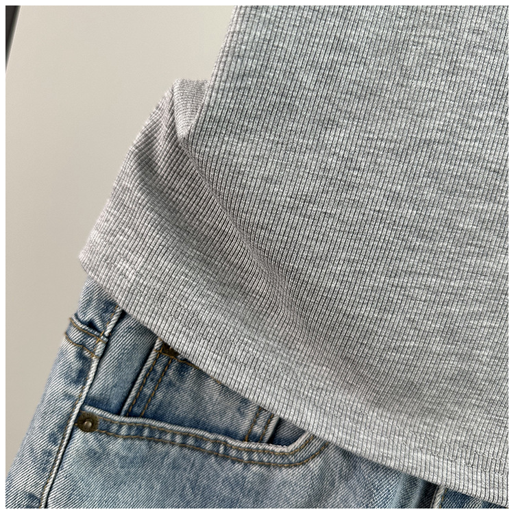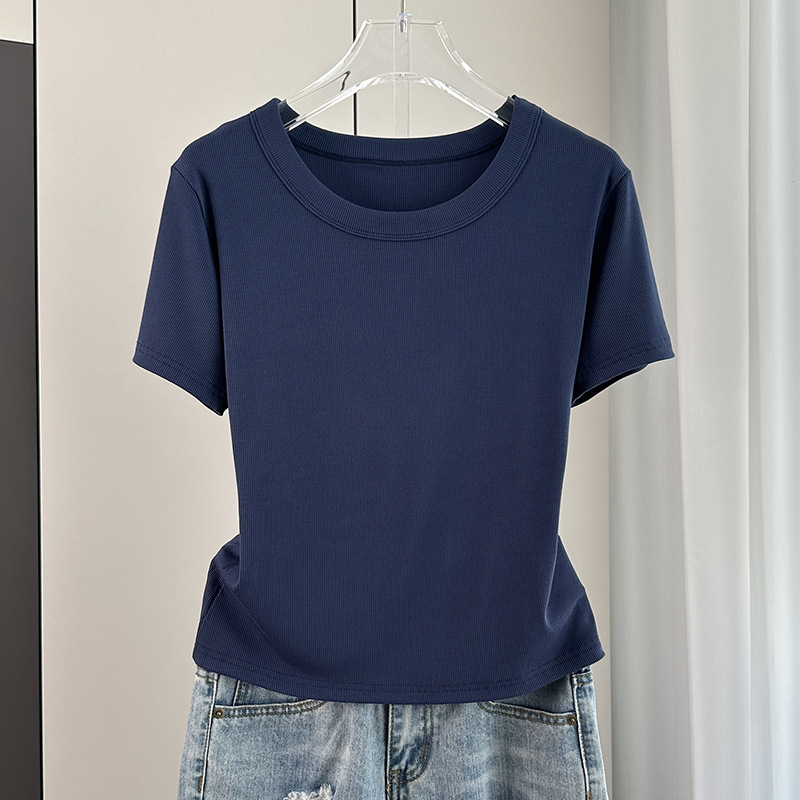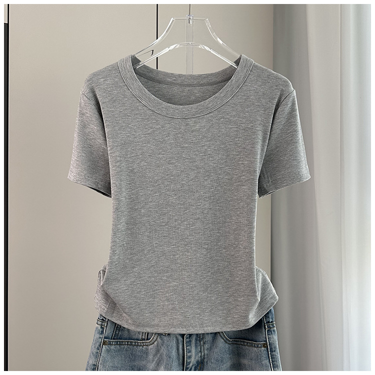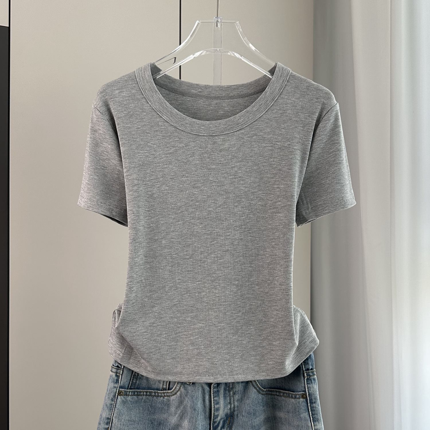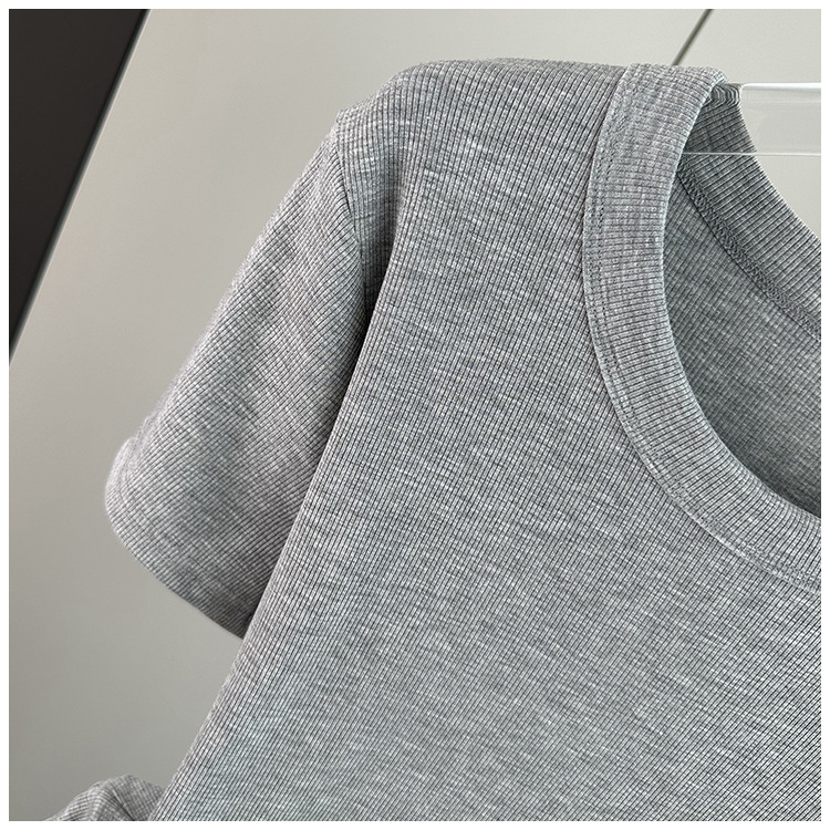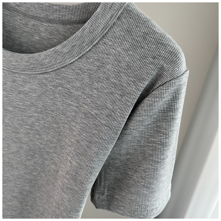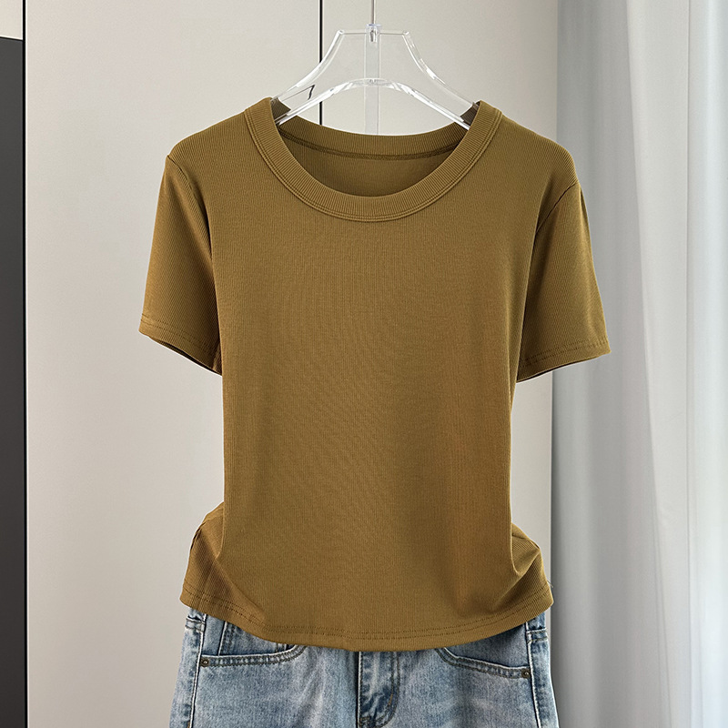 正肩短袖T恤女夏季莫代尔螺纹休闲宽松上衣体恤黑色基础款打底衫