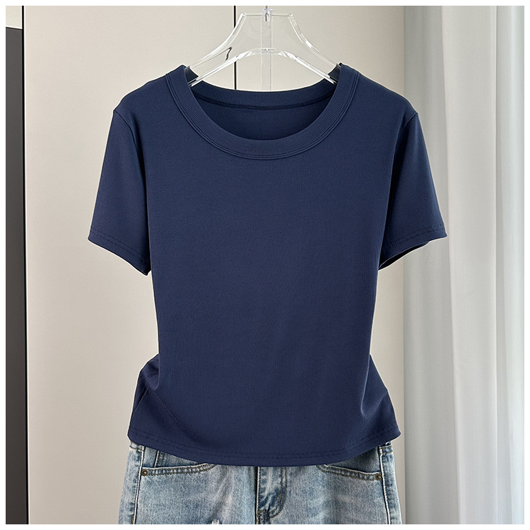 어깨 반팔 티셔츠 여성용 여름 모달 스레드 캐주얼 루즈 탑 티셔츠 블랙 베이직베이스 셔츠스토어 가기