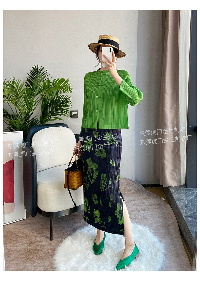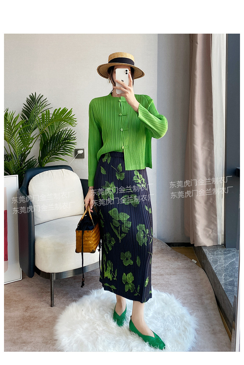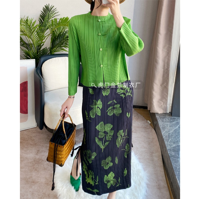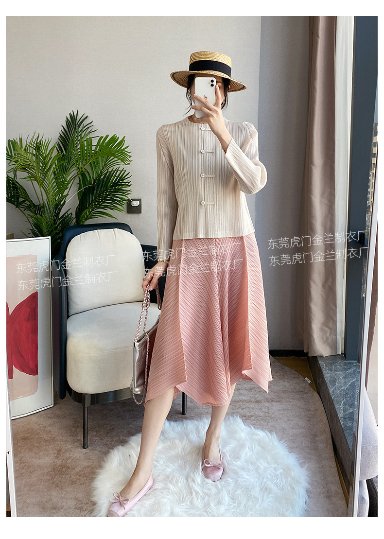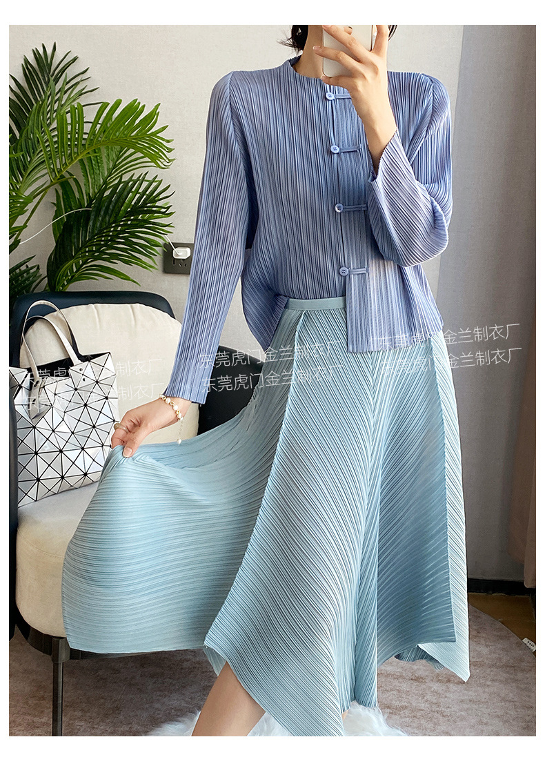 미야케 우아한 라운드 넥 탑 솔리드 컬러 셔츠 느슨한 중국 복고풍 여성의 봄과 여름 주름 국경 셔츠스토어 가기