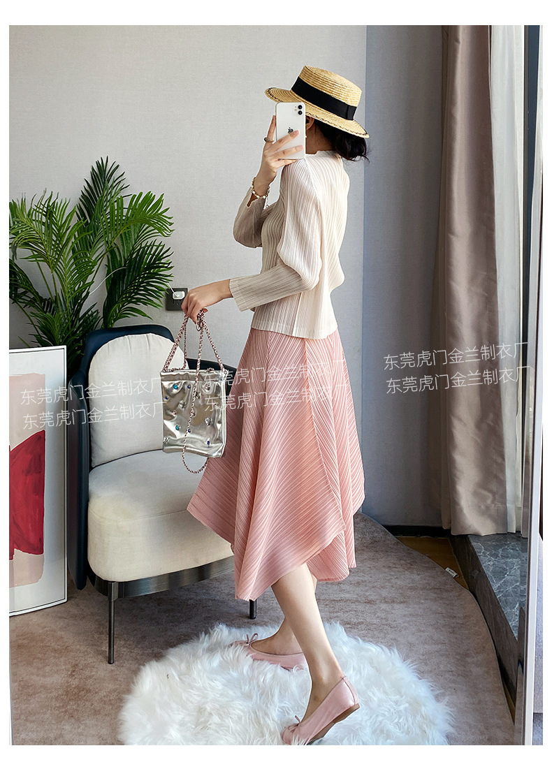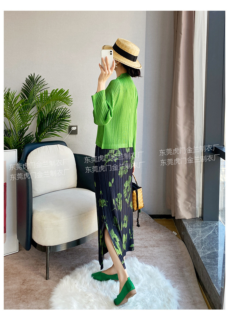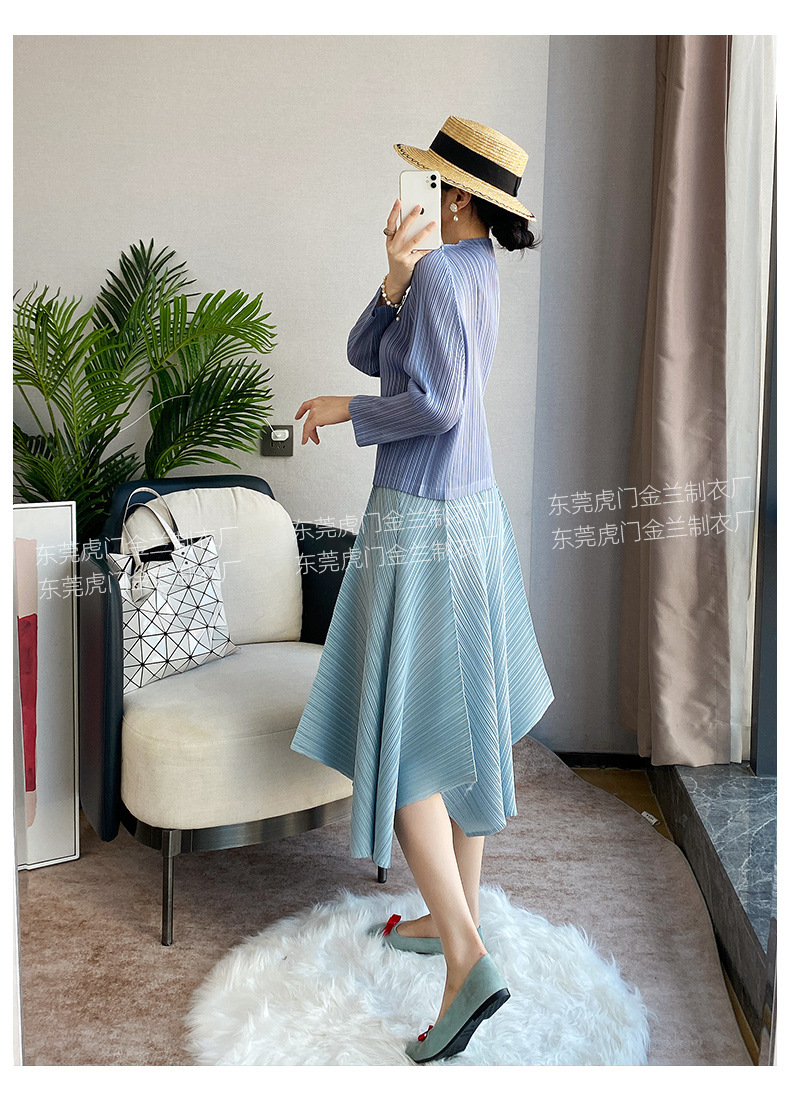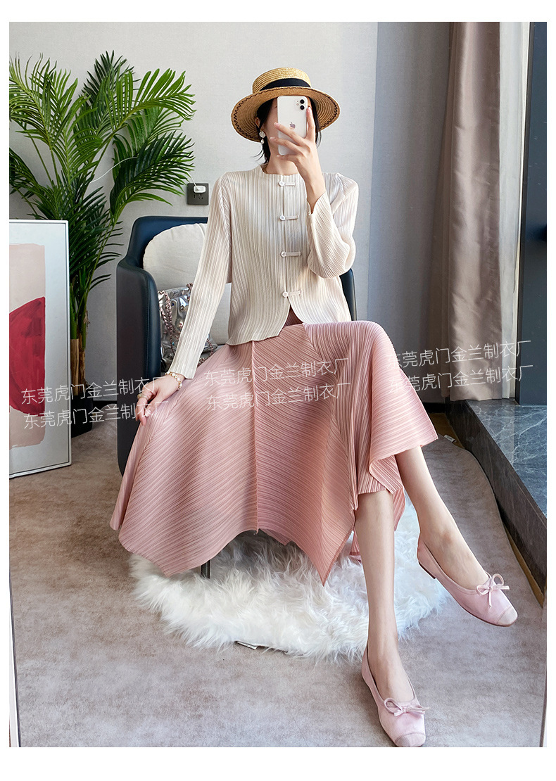 미야케 우아한 라운드 넥 탑 솔리드 컬러 셔츠 느슨한 중국 복고풍 여성의 봄과 여름 주름 국경 셔츠스토어 가기