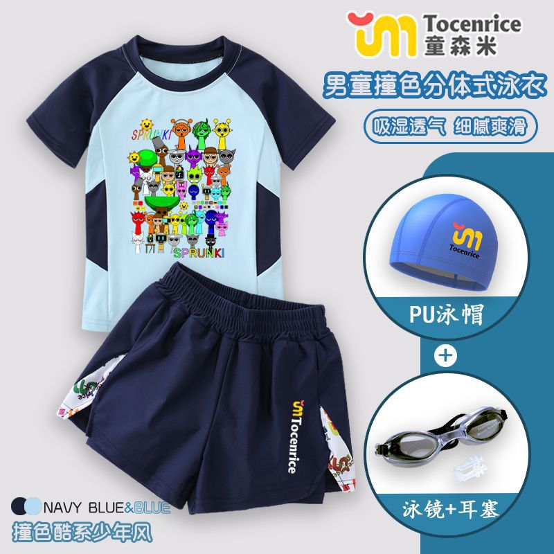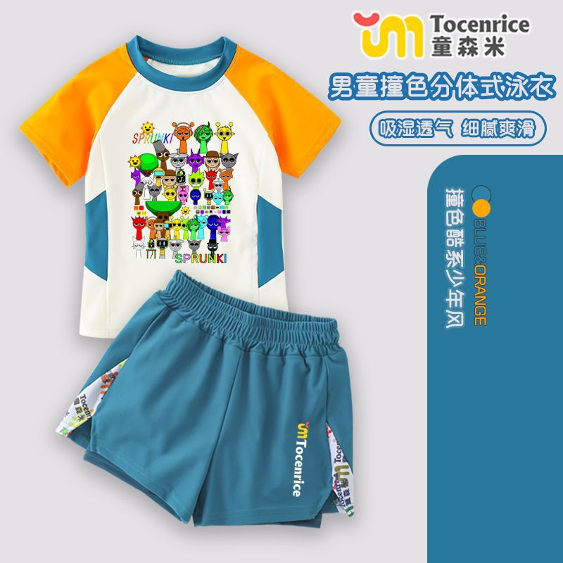 음악 리듬 박스 Sprunki 어린이 수영복 2025 남자 수영 세트 수영 트렁크 선 스크린 분할 세트 8