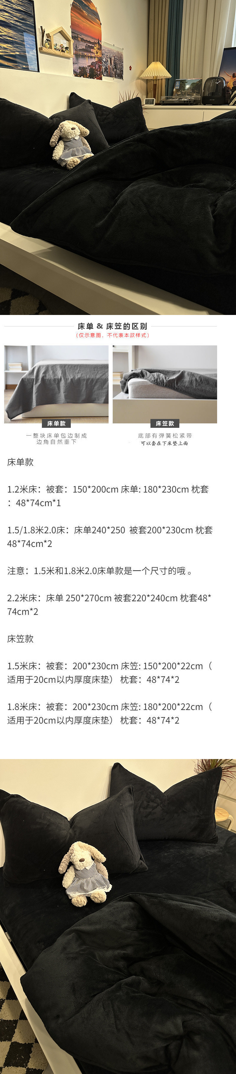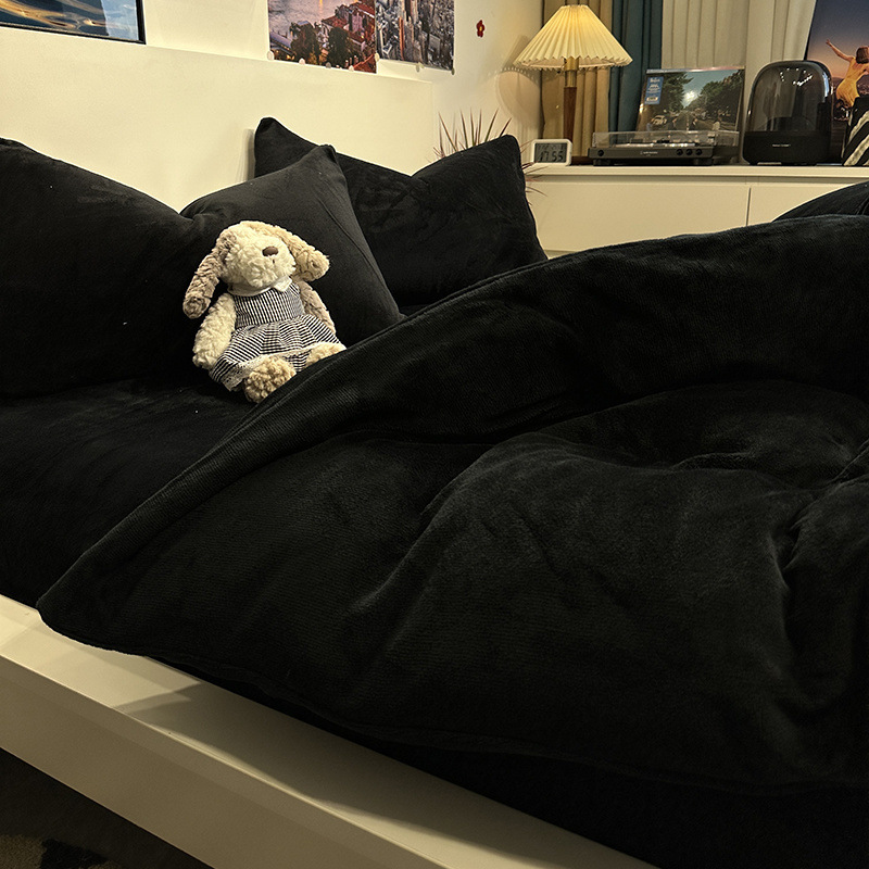 따뜻한 겨울 북유럽 간단한 검은 양면 우유 벨벳 따뜻한 4 조각 세트 두꺼운 플랜지 산호 벨벳 3 조각 세트스토어 가기