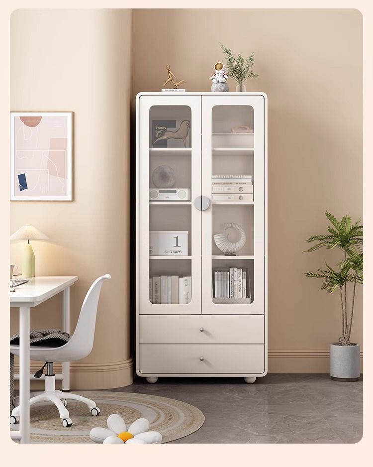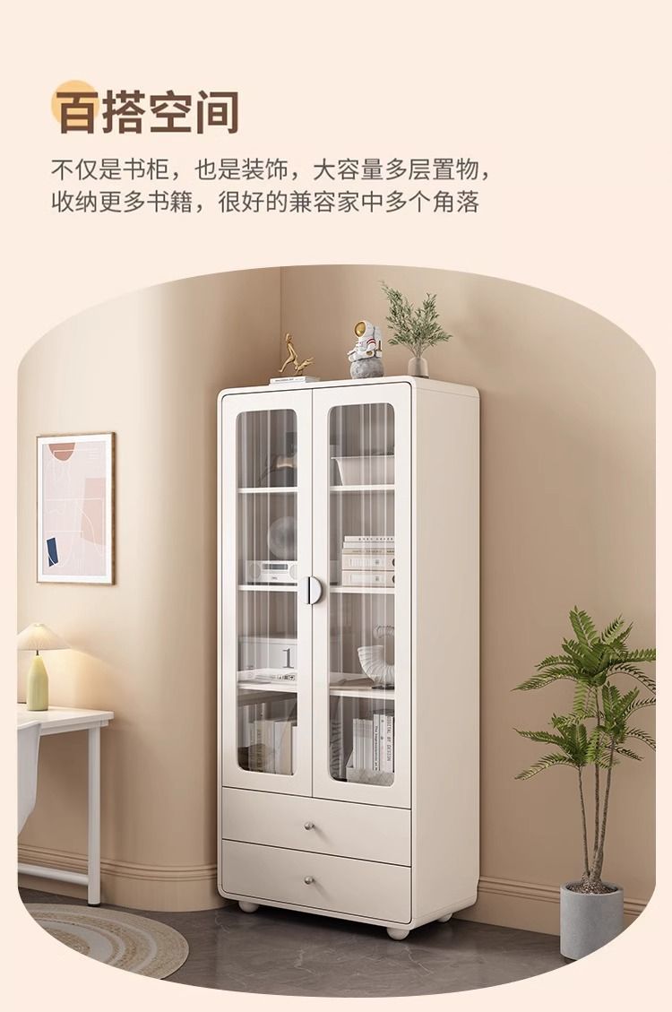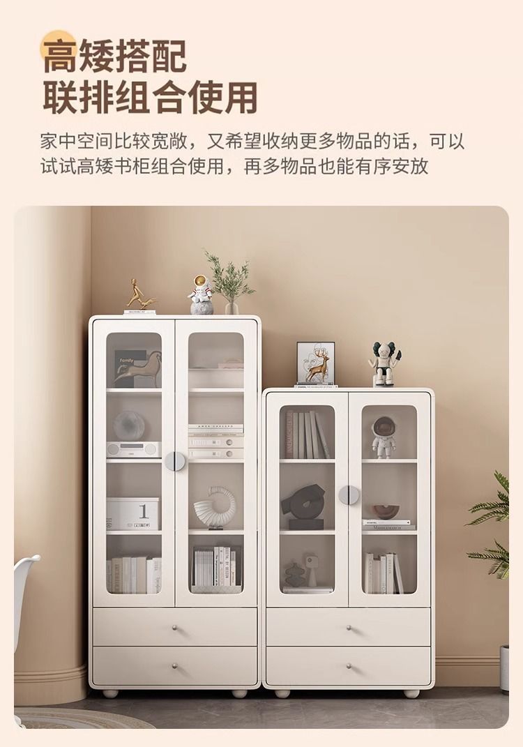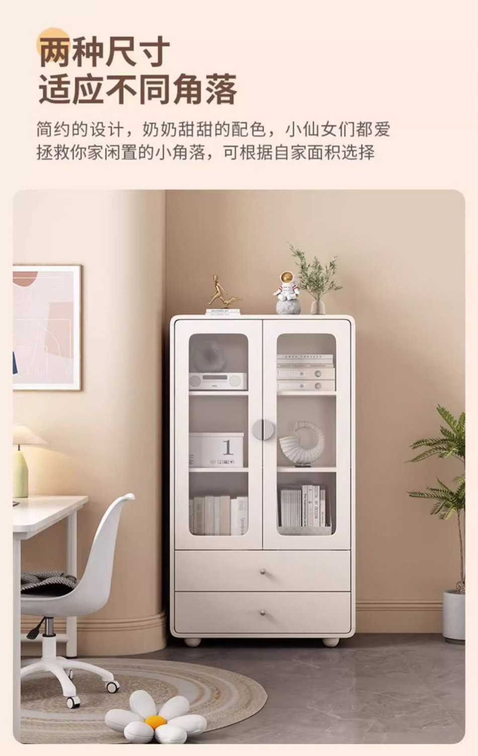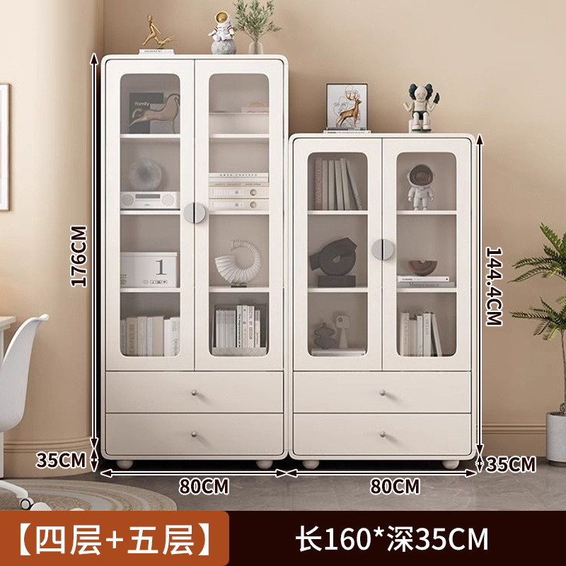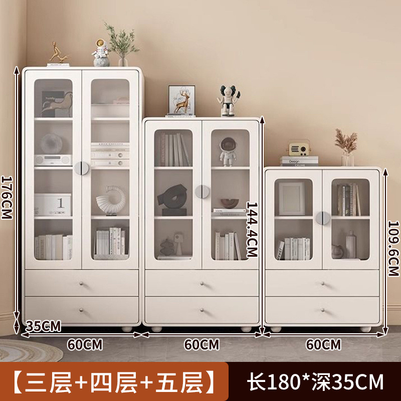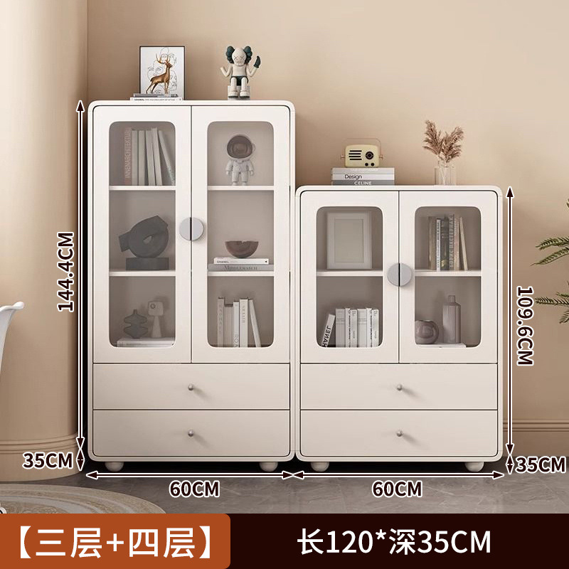 단단한 나무 책장 보관 캐비닛 통합 가정용 보관 캐비닛 바닥 서 어린이 크림 바람 방진 거실 보관 캐비닛 책장
