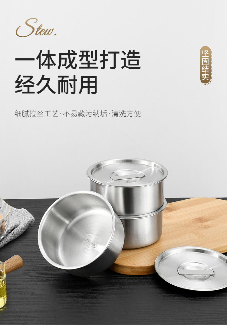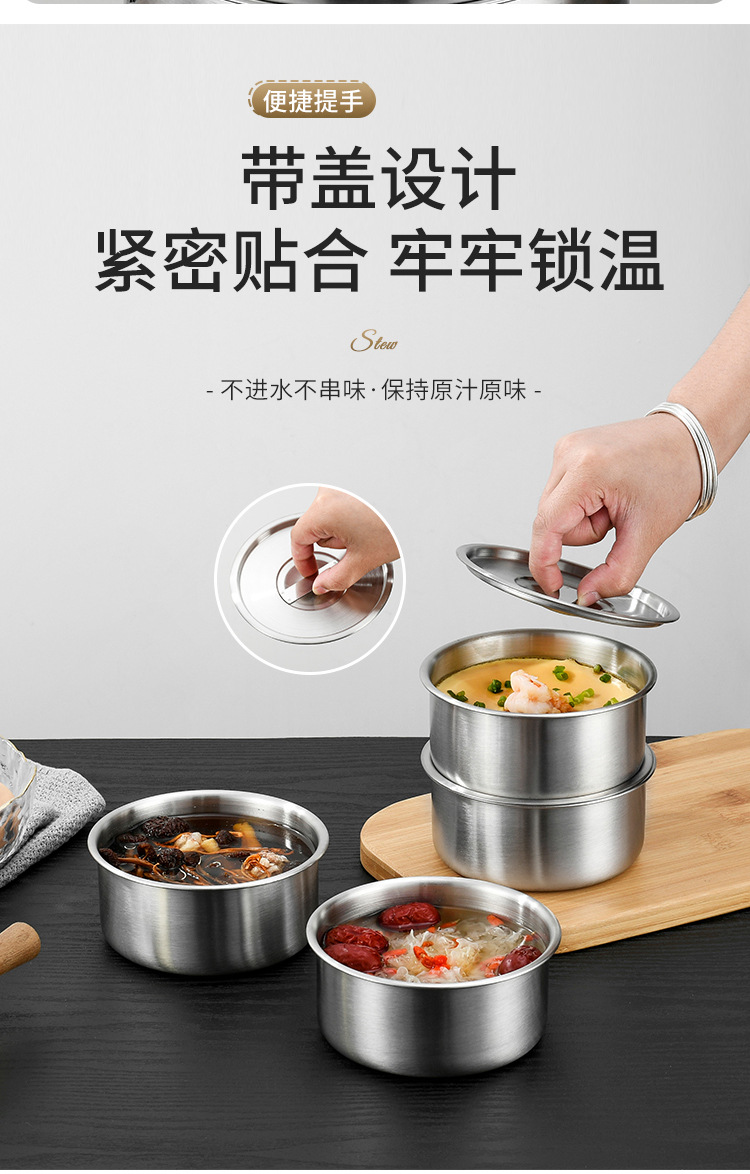 스테인레스 스틸 작은 그릇 항균 김이 그릇 304 찐 계란 아기 찐 계란 수프 뚜껑 작은 그릇 스튜 냄비 아마존 국경