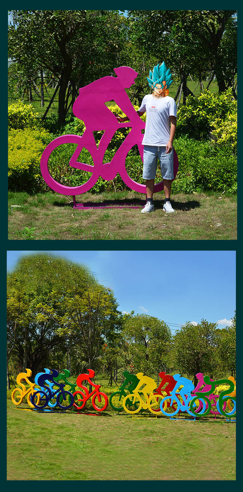 스테인레스 스틸 자전거 달리기 스포츠 그림 조각 실루엣 캠퍼스 문화 도시 공원 철 예술 스케치