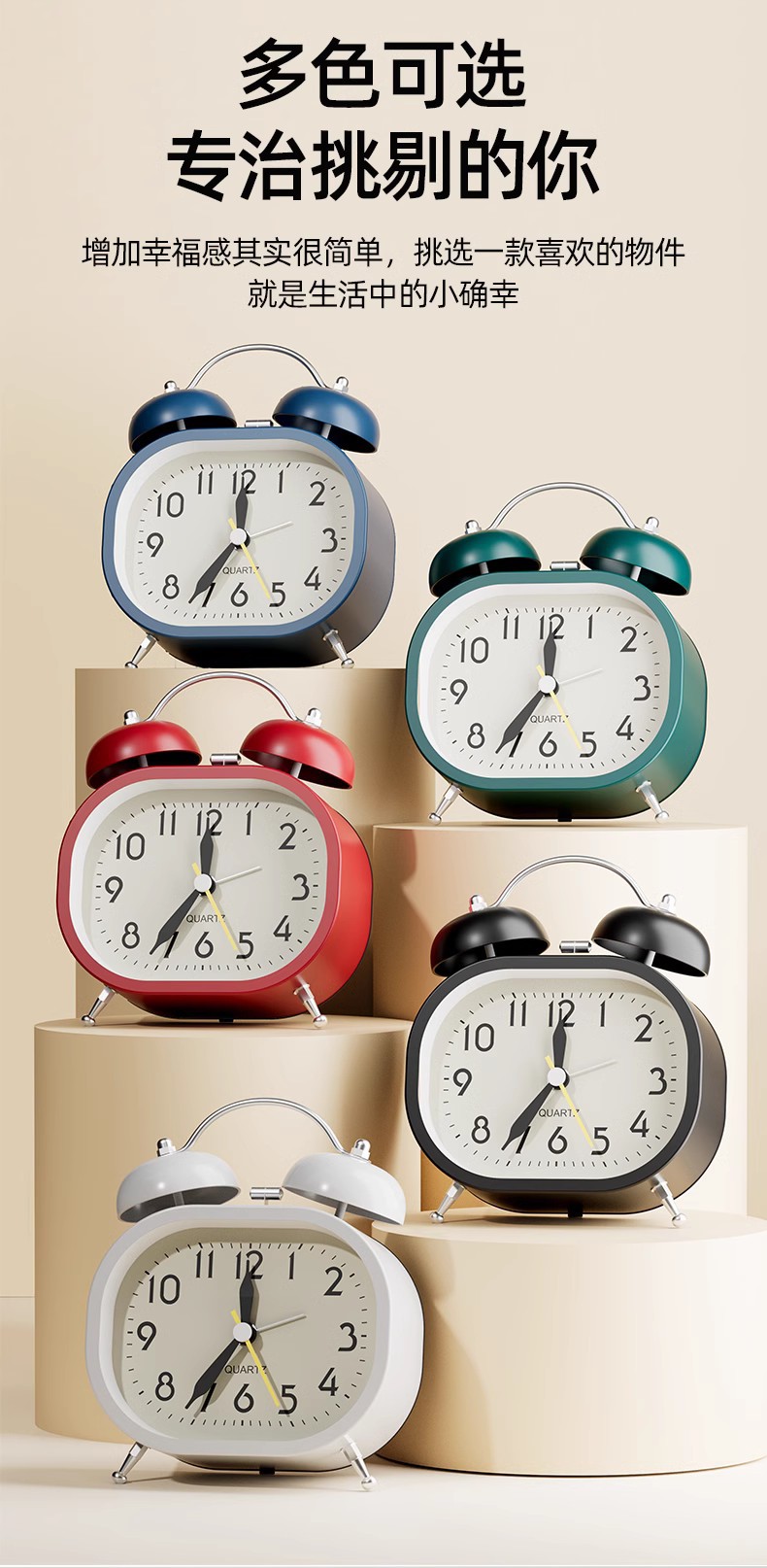 ✅금속 알람 시계 학생 어린이 벨 작은 알람 시계 만화 기계 시계 창조적 인 데스크탑 시계 장식품스토어 가기