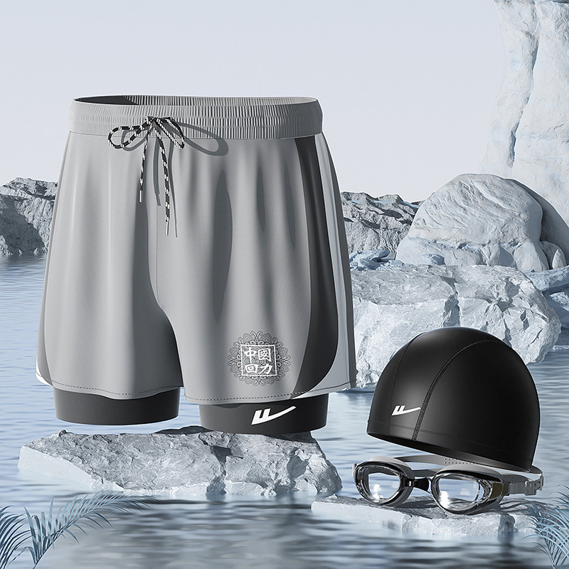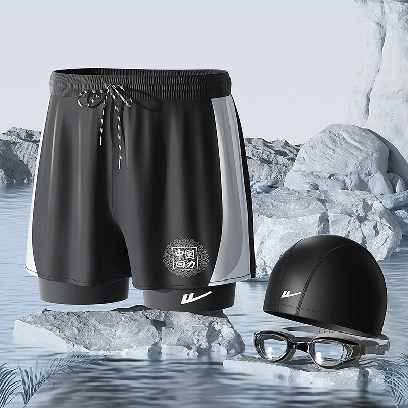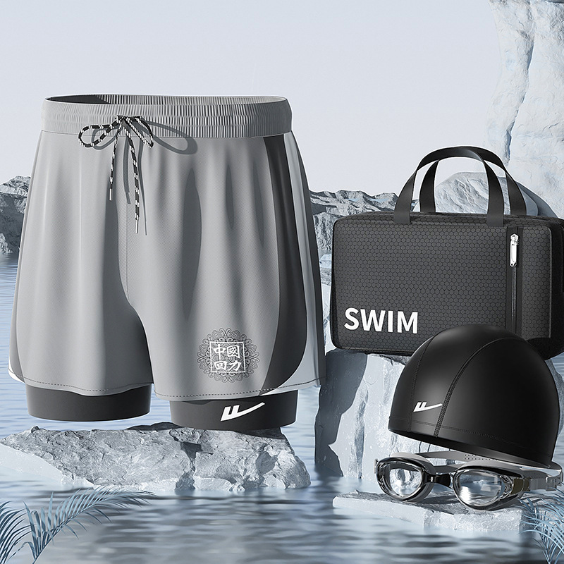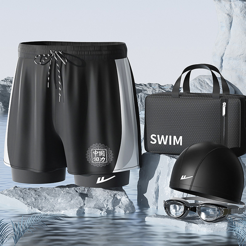 Huili 수영 트렁크 남자 2025 의 새로운 빠른 건조 방황 수영 모자 수영 고글 3 피스 남자 수영 장비 풀 세트