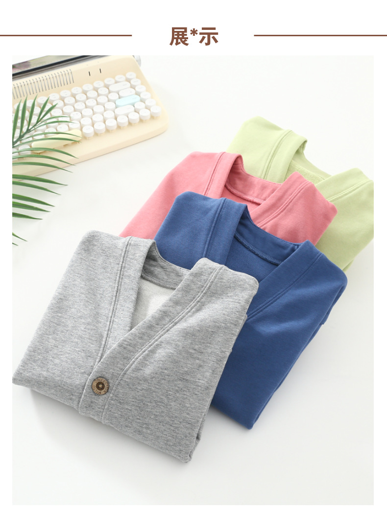 어린이 코튼 버튼 긴팔 재킷 트렌디 테리 V 넥 카디건 싱글 로우 루즈 편안한 봄 올 매치 카디건스토어 가기