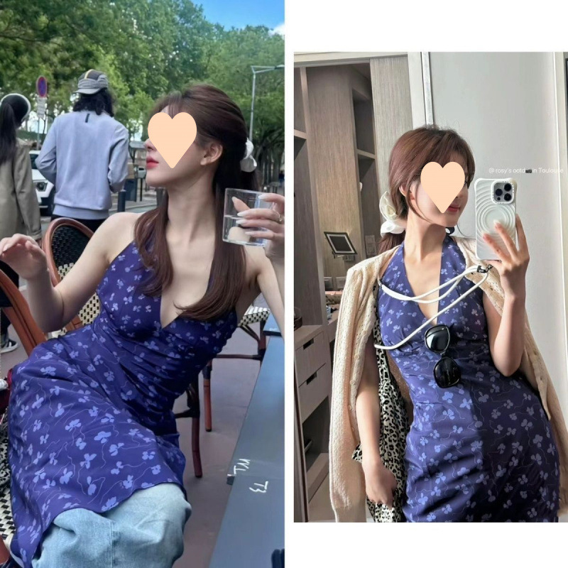보라색 목 슬링 원피스 작은 여름 새로운 칼라 허리 꽃 백리스 스커트스토어 가기