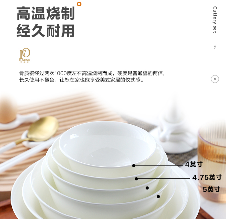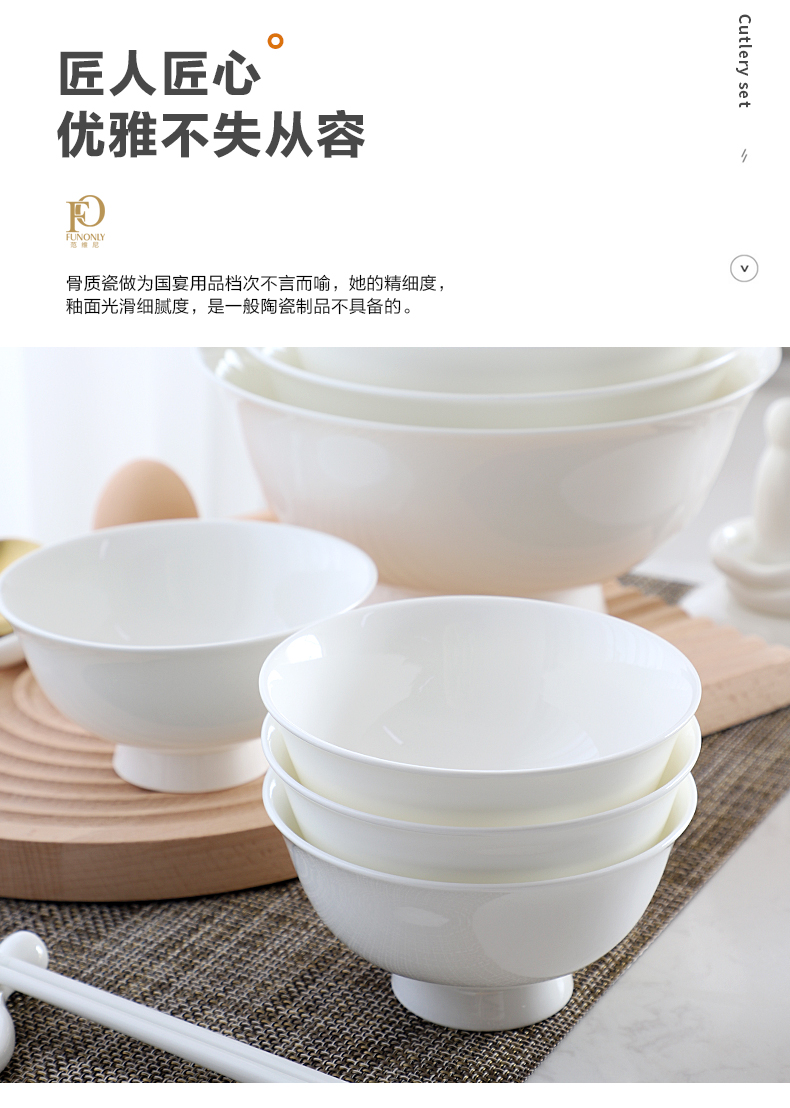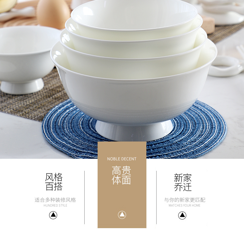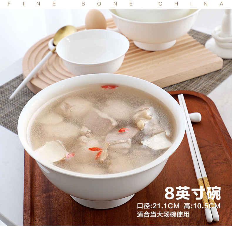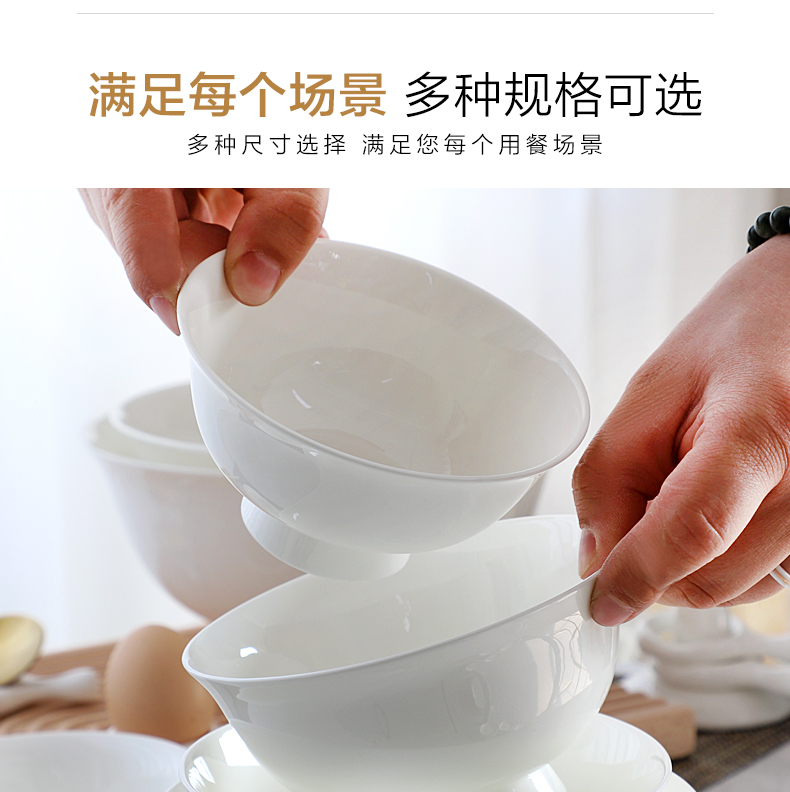 JUD5 순수 백색 뼈 중국 그릇 가정용 쌀 그릇 식사 그릇 작은 수프 그릇 큰 국수 그릇 세라믹 식기 세트 그릇스토어 가기